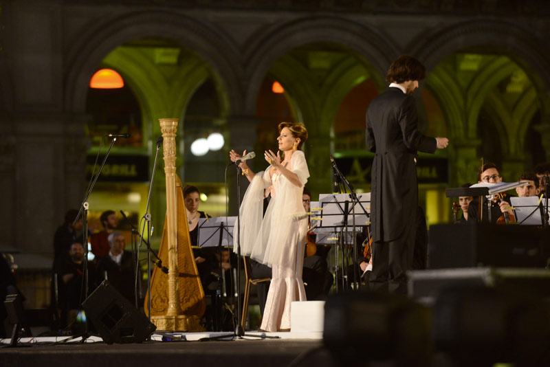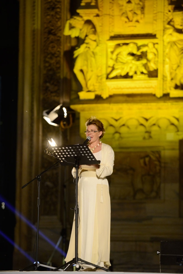 L’Ave Maria di Schubert – cantata superbamente dal tenore Vittorio Grigòlo con i bravissimi giovani di FuturOrchestra e del Coro Habel diretti dal maestro Cadario -, inonda di dolcezza una piazza che ascolta in incredibile silenzio. L’interpretazione dell’Interrogatorio a Maria di Testori da parte di Pamela Villoresi trafigge col dolore carnale e umanissimo della Madre.