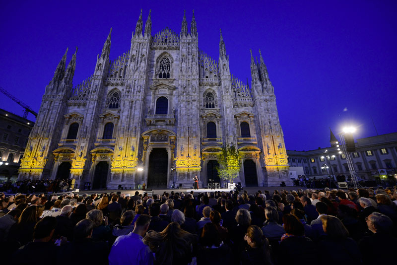 E, poi, Luca Doninelli: «Guardate questo Duomo, che è il più famoso al mondo: non è opera di Papi e vescovi, ma delle elemosine di questa gente che dalla croce quotidiana ha ricevuto forza e coraggio e che nessun potere potrà mai illudersi di tenere in mano».