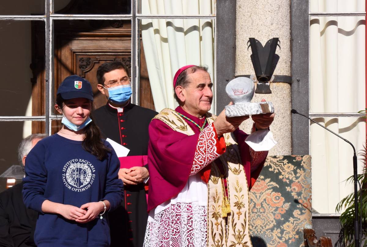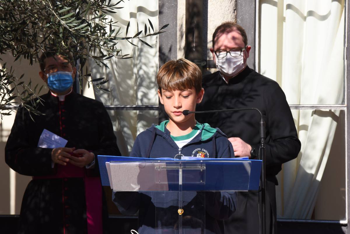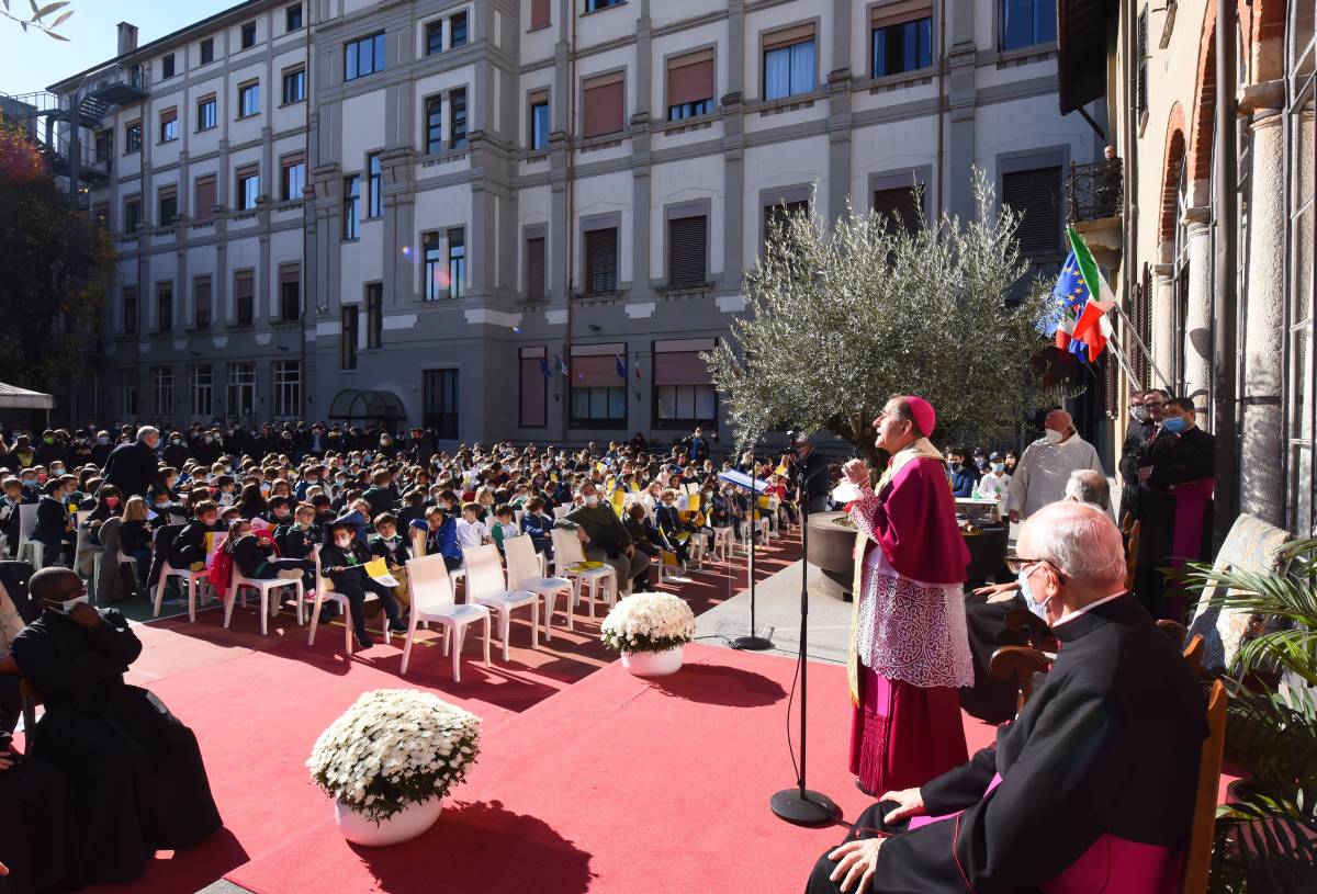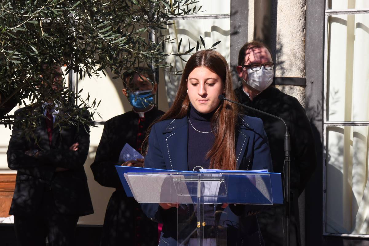 L’Arcivescovo ha quindi lasciato il proprio messaggio alla comunità scolastica attraverso tre espressioni dallo stesso definite «straniere»: kàire, rallegrati «perché la vita di ciascuno è risposta a una vocazione alla gioia, un annuncio che non autorizza a sottovalutarci mai»; Kyrie elèison, Signore abbi misericordia «perché, nonostante i limiti della condizione umana, nessuno è uno sbaglio o un fallimento perché il Signore dimostra sempre la propria misericordia di fronte alla nostra umiltà»; amen, eccomi «perché la nostra vita è vocazione e dobbiamo avere il coraggio di dire sì per viverla con coerenza».