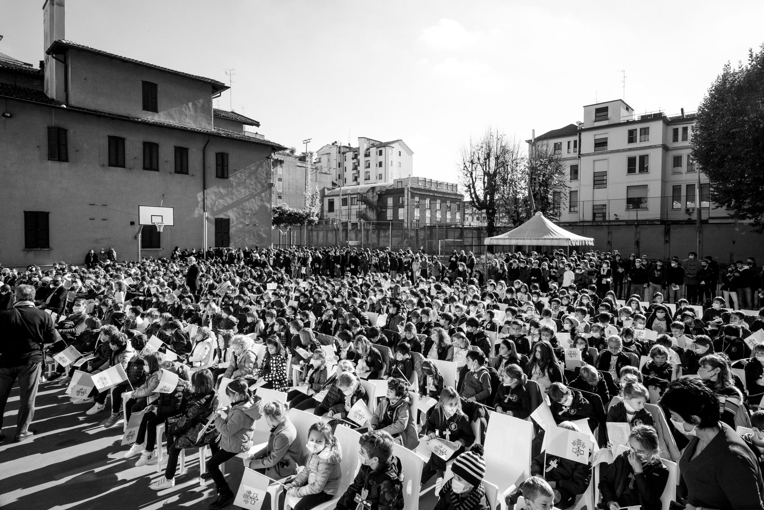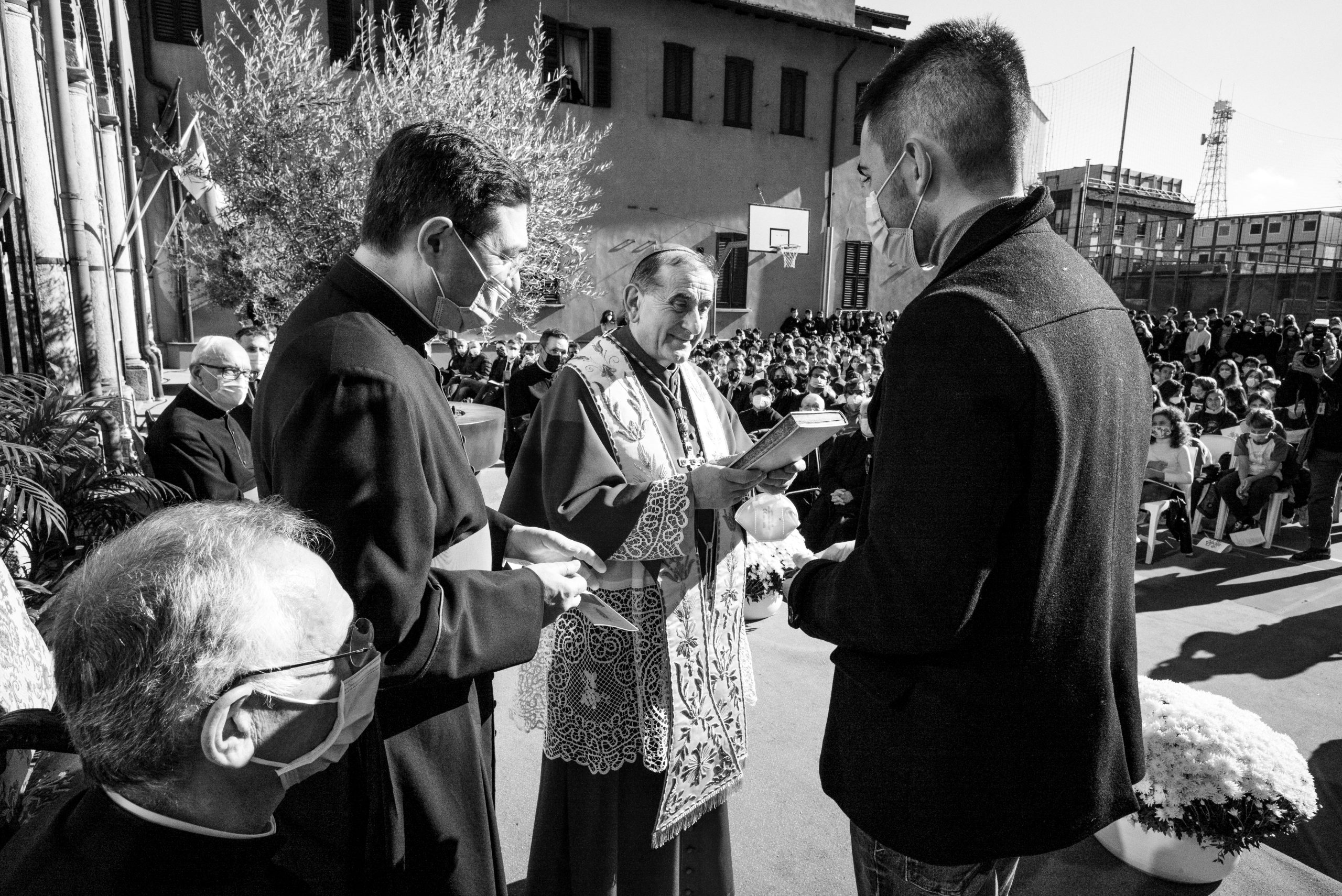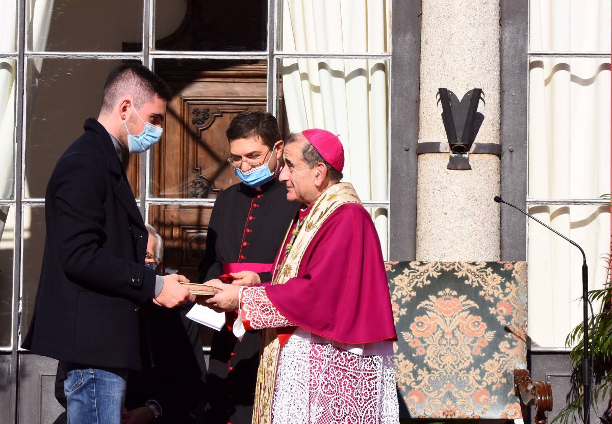 L’Arcivescovo ha quindi lasciato il proprio messaggio alla comunità scolastica attraverso tre espressioni dallo stesso definite «straniere»: kàire, rallegrati «perché la vita di ciascuno è risposta a una vocazione alla gioia, un annuncio che non autorizza a sottovalutarci mai»; Kyrie elèison, Signore abbi misericordia «perché, nonostante i limiti della condizione umana, nessuno è uno sbaglio o un fallimento perché il Signore dimostra sempre la propria misericordia di fronte alla nostra umiltà»; amen, eccomi «perché la nostra vita è vocazione e dobbiamo avere il coraggio di dire sì per viverla con coerenza».
