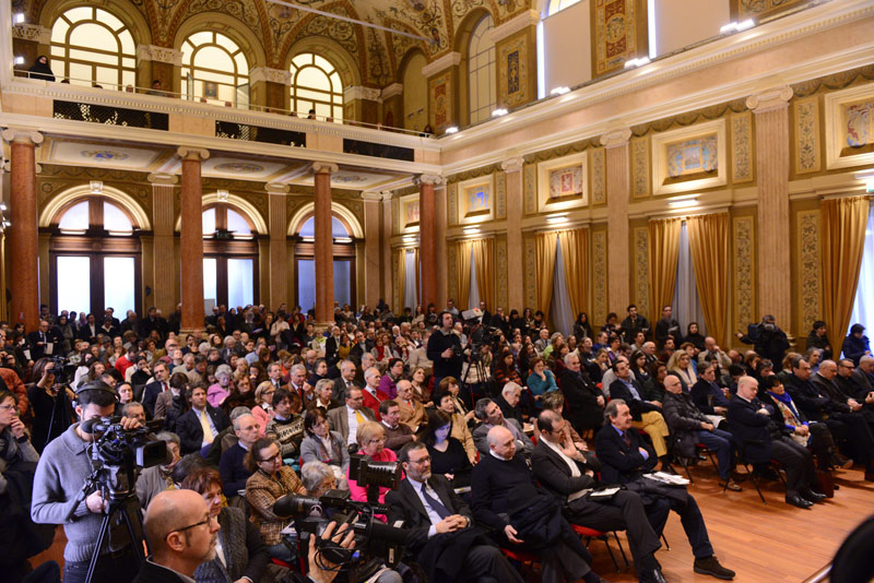 All’intensità delle parole di Quirico l’arcivescovo Scola allarga lo sguardo dalla dimensione del giornalismo e parla a tutti sottolineando come nel racconto dell’inviato emerga forte l’aspetto della commozione. «Un’esperienza naturale dell’uomo», afferma. «Credo – aggiunge – sia una delle manifestazioni più evidenti della dimensione religiosa insopprimibile di ogni donna e uomo. Inclinazione istintiva ad appassionarci tutti assieme a chi è nella prova. Basta vedere come la gente si mobilita di fronte alle disgrazie e alle sciagure. Il moto naturale della compassione può esistere senza la commozione? No. E se noi siamo diventati duri di cuore – penso soprattutto a noi europei che spesso siamo, come dice Il poeta Eliot ’impagliati’, duri a commuoverci – e’anche perché la compassione non è più costume e non siamo in grado a livello originario di coinvolgerci».