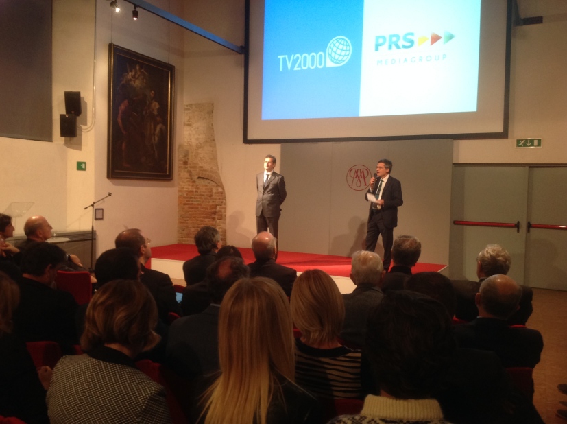 Ci sono tutti, i vertici dell’emittente, i direttori, i conduttori, chi sta ogni giorno davanti e dietro le telecamere. E poi c’è l’editore, la Conferenza Episcopale Italiana, nella persona del segretario generale monsignor Nunzio Galantino. Che, in apertura della presentazione del palinsesto della nuova stagione 2015-2016 in programmazione dall’8 settembre scorso, dice: «È andata bene, molto bene, occorre continuare su questa strada. Tv2000 si inserisce nella complessità senza semplificazione, con un parlare chiaro, una parresia che ne fa una realtà esemplare, capace di dire come si deve fare televisione». E fa anche una raccomandazione: «Girate alla larga dai peccati dei media quali la calunnia, la banalizzazione, la menzogna. Oggi ciò che è deficitario è l’incontro. Contribuite, come televisione in uscita, alla Chiesa in uscita di papa Francesco. Preferisco che qualche volta si sbagli, piuttosto che essere troppo prevedibili. È bella una televisione che anticipi, che abbia la voglia di dire e di fare qualcosa di bene. E i nostri numeri testimoniano che questo piace». «La Cei sta facendo investimento sul campo mess-mediale, nella consapevolezza che una Chiesa impegnata nella nuova evangelizzazione deve collocarsi nel contesto della società odierna, raccogliendo le sfide di oggi», aggiunge monsignor Coccia, presidente della Fondazione “Comunicazione e cultura” della Cei.