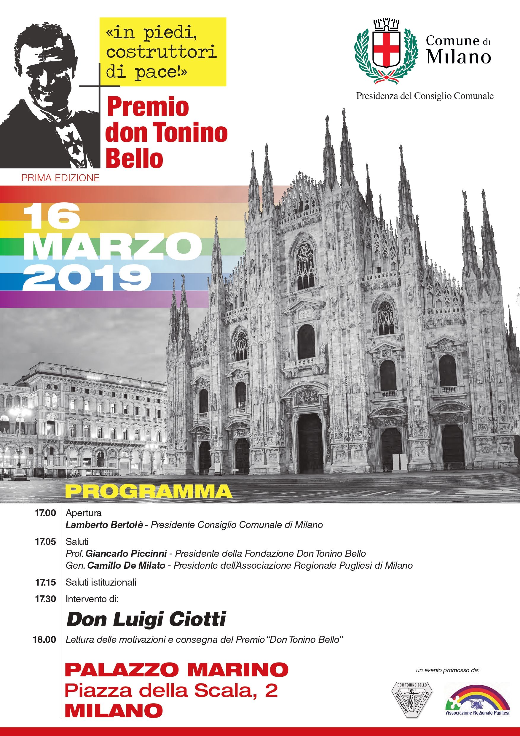 Il Premio, istituito dall’Associazione regionale pugliesi di Milano e dalla Fondazione don Tonino Bello di Alessano, con il patrocinio della Presidenza del Consiglio comunale di Milano, è alla sua prima edizione e si svolgerà sabato 16 marzo, alle 17, a Palazzo Marino (piazza della Scala 2).