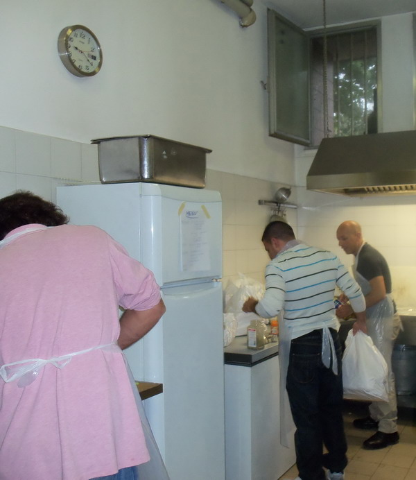 Ogni anno la parrocchia Sant’Arialdo di Baranzate organizza una giornata dal titolo “La comunità fa festa con l’anziano”, ma da tempo mancano i volontari per preparare il pranzo per tutti. Quando Santo, un detenuto di Bollate che quando è fuori frequenta la parrocchia, ha saputo che don Paolo Steffano l’ultima volta aveva dovuto pagare i cuochi, non ha esitato a dire: «Veniamo noi a darvi una mano». E così è stato. Si è rivolto ad alcuni compagni, che come lui escono al mattino a lavorare e rientrano la sera (in regime di articolo 21), e ha proposto loro di preparare il pranzo per gli anziani della parrocchia. «Erano entusiasti dell’evento», assicura Santo. «Allora abbiamo chiesto alla direzione del carcere di autorizzarci a organizzare l’evento e ha accolto subito la nostra domanda». La squadra di chef composta da Santo, Francesco, Fabio, Damiano, Alessandro, Dino e Doriano era pronta. «All’inizio eravamo preoccupati perché, pur cucinando tra di noi, nessuno aveva mai fatto da mangiare per 100 o 200 persone. Ma nel giro di qualche giorno abbiamo chiesto consigli a qualcuno fuori che lavora nei ristoranti e poi uno di noi ha coinvolto anche la moglie che fa la volontaria in parrocchia. Quindi ci siamo rimboccati le maniche e ci siamo arrangiati».
