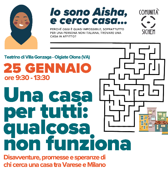 Proprio su questi temi l’Associazione Sichem di Olgiate Olona intende richiamare l’attenzione con un confronto pubblico organizzato per sabato 25 gennaio alle 9.30 al Teatrino di Villa Gonzaga nel Comune del Varesotto, dal titolo «Una casa per tutti: qualcosa non funziona. Disavventure, promesse e speranze di chi cerca una casa tra Varese e Milano» (vedi qui).