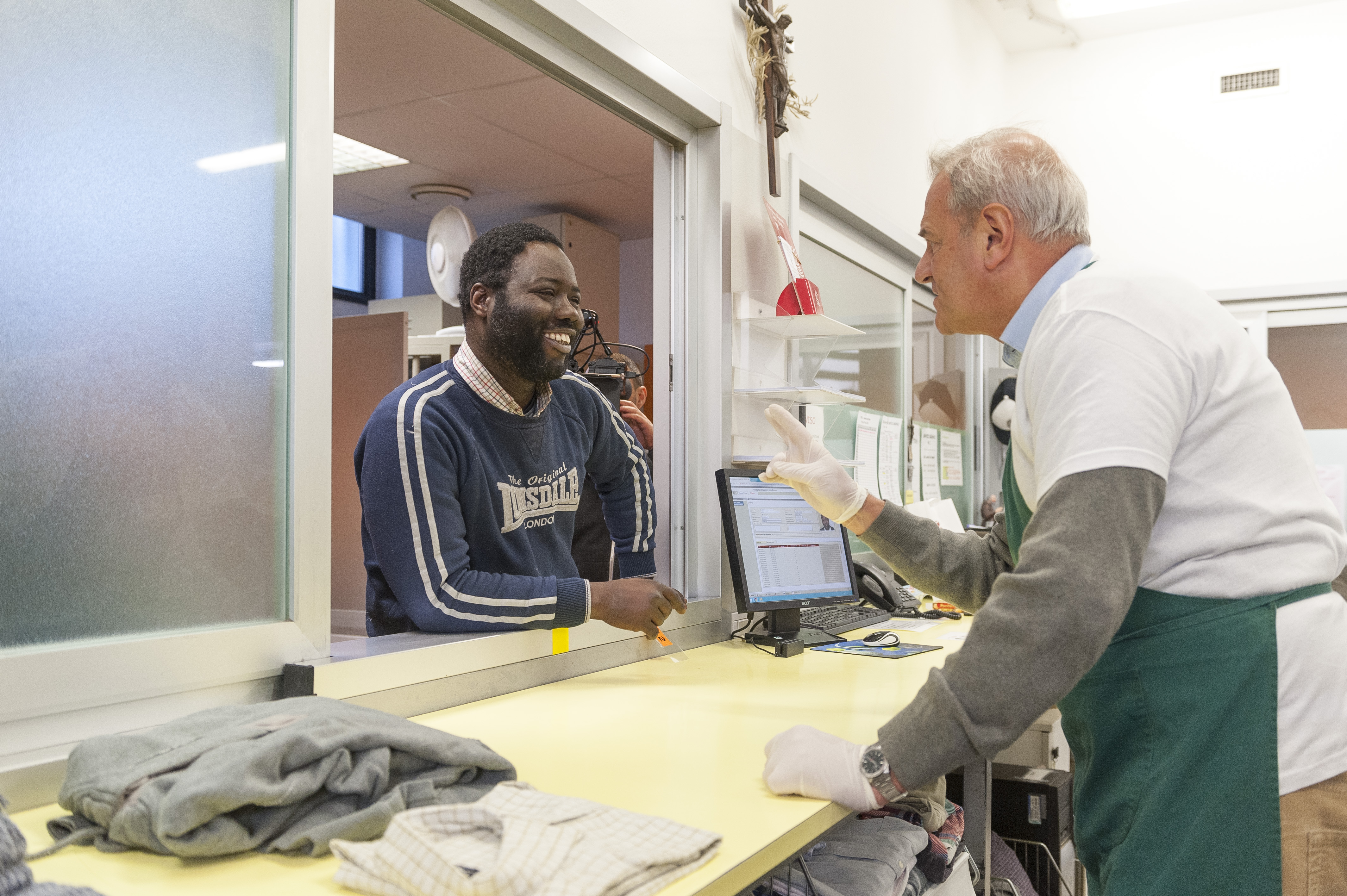 L’esperienza alle Docce e Guardaroba di Bertolino consolida il nuovo progetto di Osf “Volontario all’Opera per un giorno” ideato per celebrare in modo concreto l’anniversario di OSF: il 20 dicembre 1959 Fra Cecilio – portinaio del convento di viale Piave – inaugurava la Mensa dei Poveri di corso Concordia, primo servizio al quale negli anni sono susseguiti molti altri, allo scopo di dare un sostegno concreto a chi soffre. Da allora infatti, uomini, donne e famiglie, italiani e stranieri, possono contare su due Mense – a quella storica si è aggiunta la più recente in piazzale Velasquez -, un Servizio Docce e Guardaroba che permette loro di lavarsi e avere degli abiti puliti, il Poliambulatorio grazie al quale ricevono cure mediche e medicinali gratuitamente, l’Area Sociale che offre supporto per la ricerca di lavoro, guida e assiste gli utenti che intendono riprendere in mano la propria vita professionale, sociale o hanno necessità di una sistemazione abitativa attraverso il Progetto Housing First e Housing Sociale. Senza dimenticare il Centro Raccolta dove i cittadini possono consegnare le loro donazioni di indumenti o medicinali che andranno a beneficio dei poveri. Tutto questo è da sempre reso possibile grazie a un grande numero di volontari, che hanno deciso di impegnarsi concretamente in favore del prossimo meno fortunato. Quasi 1000 cittadini – 200 dei quali medici – che permettono ogni giorno il perfetto svolgimento di tutte le attività di aiuto di Opera San Francesco.