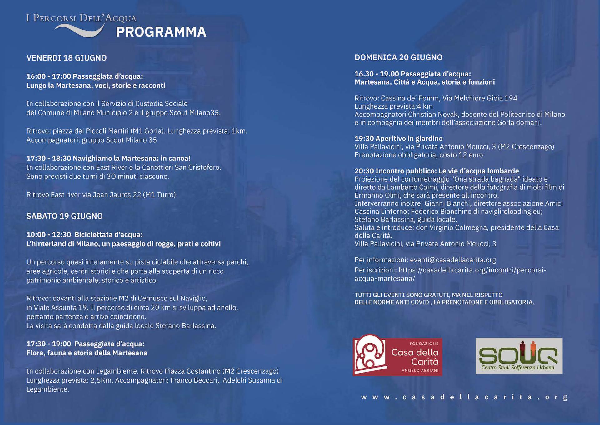 La Casa della Carità continua il suo percorso di riflessione sull’acqua con un fine settimana di eventi aperti alla cittadinanza, che si snoderanno lungo il corso del naviglio Martesana.