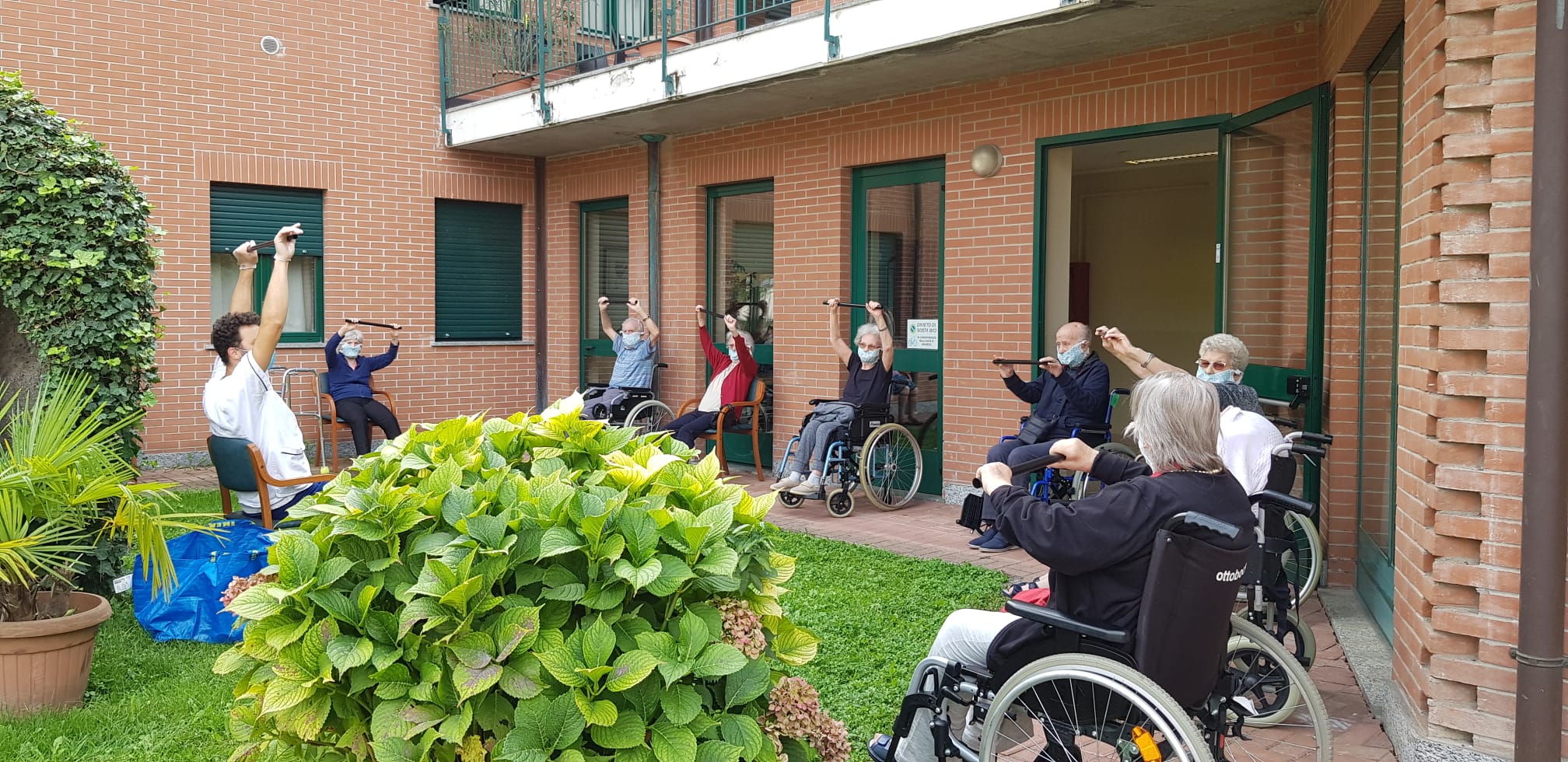 Intanto in Casa Famiglia sono gradualmente in ripresa tutte quelle attività che da sempre avevano caratterizzato il trascorrere dei giorni: «Di nuovo viene celebrata la Santa Messa nel grande giardino della Casa Famiglia dal parroco don Achille. I residenti muniti di mascherina e mantenendo il distanziamento sociale stanno di nuovo partecipando con entusiasmo alla funzione religiosa». Sempre poi apprezzati i momenti dedicati alla salute e allo stare insieme: «Abbiamo promosso la fisioterapia on the air, in giardino e all’aria aperta, per la gioia di tanti nostri amici».