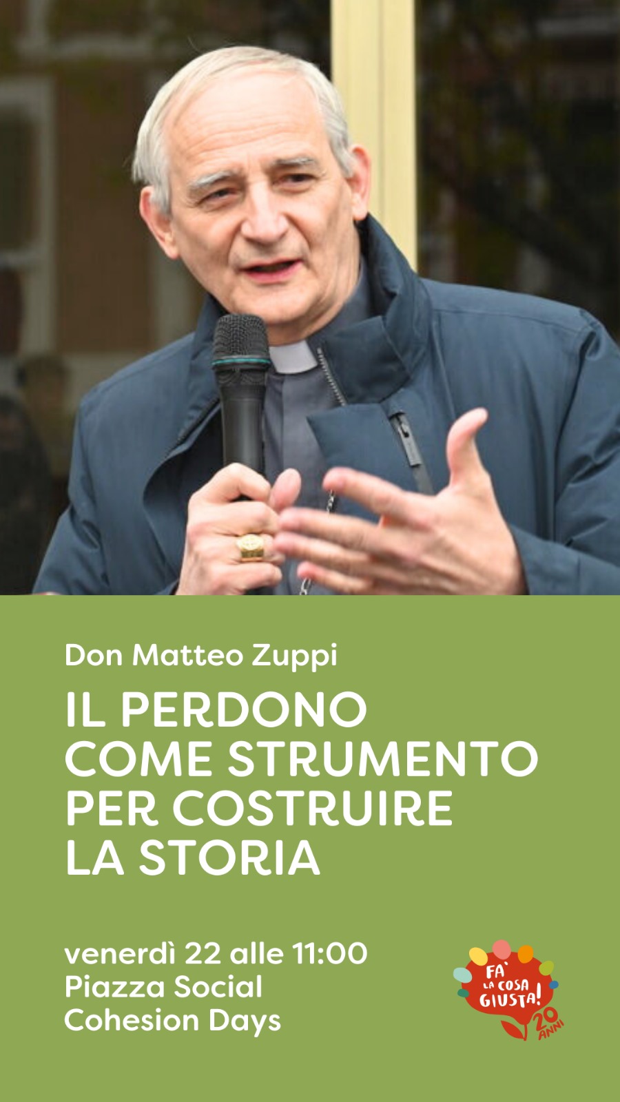 Anche quest’anno numerosi appuntamenti con grandi ospiti. Alla presentazione di questa edizione Miriam Giovanzana, direttrice editoriale di Terre di mezzo, ha annunciato che sarà presente il cardinale di Bologna e presidente della Cei, il cardinale Matteo Zuppi (venerdì 22 marzo, alle 11, Piazza Social Cohesion Days): «Dialogheremo sulla pace, in particolare sui conflitti che oggi attanagliano il mondo, a partire dalla guerra in Ucraina».