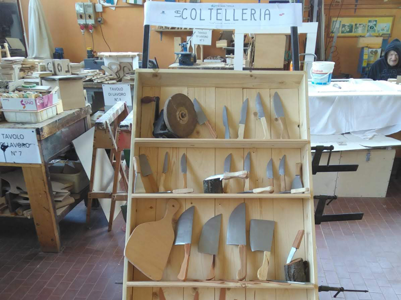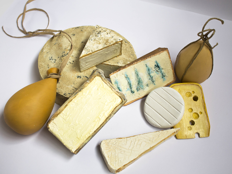 Quattro sono i “neg-ozi”: macelleria, pasticceria, formaggiaio e coltelleria, gremiti di prodotti in legno e ceramica realizzati con cura e pazienza. Salami, bistecche, coltelli, formaggi e dolci talmente simili al vero da far venire l’acquolina in bocca, ideali per fare uno scherzo durante una cena con gli amici. Prodotti finti che sono più veri di quelli veri; più veri della finzione e più finti della verità. Tanti oggetti che sembrano tutti uguali ma, a guardarli bene, sono diversi l’uno dall’altro, perché ciascuno è un pezzo unico. Come chi li ha prodotti. Verranno esposti su un carretto come se si trattasse di un vero negozio.