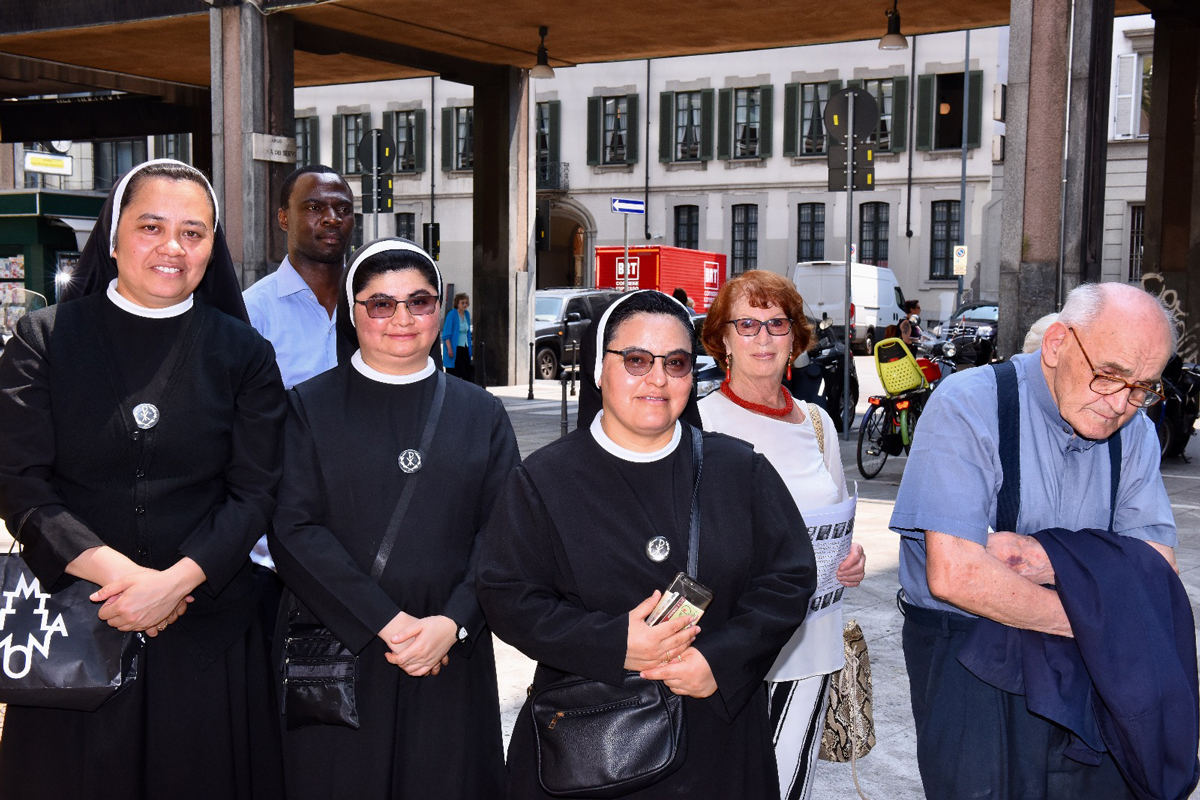 Tra una chiesa antica e raccolta e uno spazio di cultura, come certamente gli sarebbe piaciuto. Da oggi è intitolato a lui, a padre David Maria Turoldo, il giardino di Largo Corsia dei Servi, alle spalle di corso Vittorio Emanuele e davanti alla chiesa di San Vito al Pasquirolo e alla sede del Centro Culturale di Milano. Un simbolo e un segno che allo scoprimento della targa, suscitano, immediato e spontaneo, un lungo applauso tra la piccola folla radunatasi per l’occasione. Ci sono gli amici di sempre, i rappresentanti delle istituzioni e della società civile, alcune parenti del poeta, nei loro costumi tradizionali della Carnia in Friuli, artisti, i confratelli Servi di Maria e il vescovo monsignor Paolo Martinelli che porta il saluto dell’Arcivescovo.