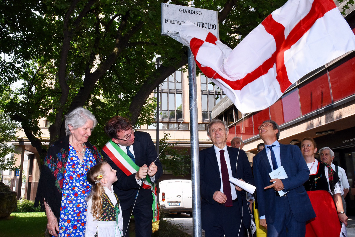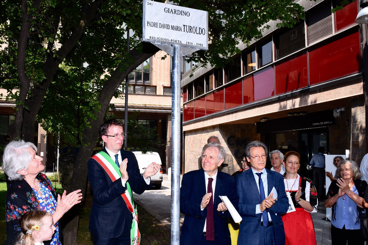 Della grande «importanza di un gesto di valore civile e storico», parla l’assessore alla Cultura del Comune di Milano, Filippo Del Corno, che indossa la fascia tricolore del sindaco, rappresentando il sindaco Beppe Sala. Accanto a lui il presidente del Consiglio comunale, Lamberto Bertolé. «Intitolare una piazza e un giardino, è dare un nome a uno spazio, è una responsabilità e sono grato a tutti coloro che mi hanno indicato la necessità di questa scelta e il luogo: una piazza che si collega agli itinerari da lui percorsi nella nostra città. Non poteva esservi migliore collocazione», continua Del Corno, che conclude: «Turoldo è una delle figure che esemplificano la dimensione religiosa, che egli ha incarnato nella sua intera vita, e la responsabilità civile. Portare a termine questo procedimento di intitolazione è una forma di ricordo ma anche di gratitudine».