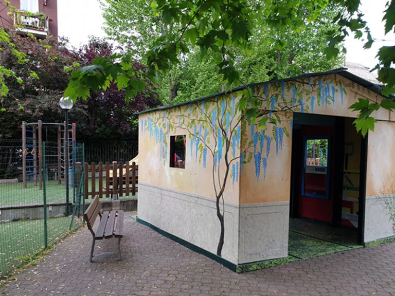 La casetta è posizionata proprio davanti allo spazio giochi che l’oratorio riserva ai più piccoli.