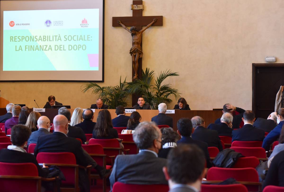 Una finanza dove il denaro non è un fine bensì uno strumento in grado di promuovere coesione sociale, bene comune, sviluppo sostenibile. È la via da percorrere per immaginare «un modo diverso di abitare la terra». E soprattutto per arginare quelle «asimmetrie» che la crisi economica, prima, e la pandemia, poi, hanno contribuito ad aumentare. È uno dei messaggi forti emersi dal dialogo tra l’Arcivescovo di Milano monsignor Mario Delpini e il direttore della sede di Milano di Banca d’Italia Giorgio Gobbi, intervenuti giovedì 18 novembre, nell’ambito di BookCity, alla presentazione del libro Credito e responsabilità sociale, curato dalla preside di Scienze bancarie, finanziarie e assicurative Elena Beccalli e pubblicato dalla casa editrice “Vita e Pensiero”. Si tratta del secondo titolo della collana “Economia, finanza e responsabilità sociale” che raccoglie le riflessioni sviluppate ed esperienze maturate nei laboratori promossi dall’Università Cattolica sul Documento Oeconomicae et Pecuniariae Quaestiones, della Congregazione per la Dottrina della Fede e del Dicastero per il Servizio dello Sviluppo Umano Integrale.
