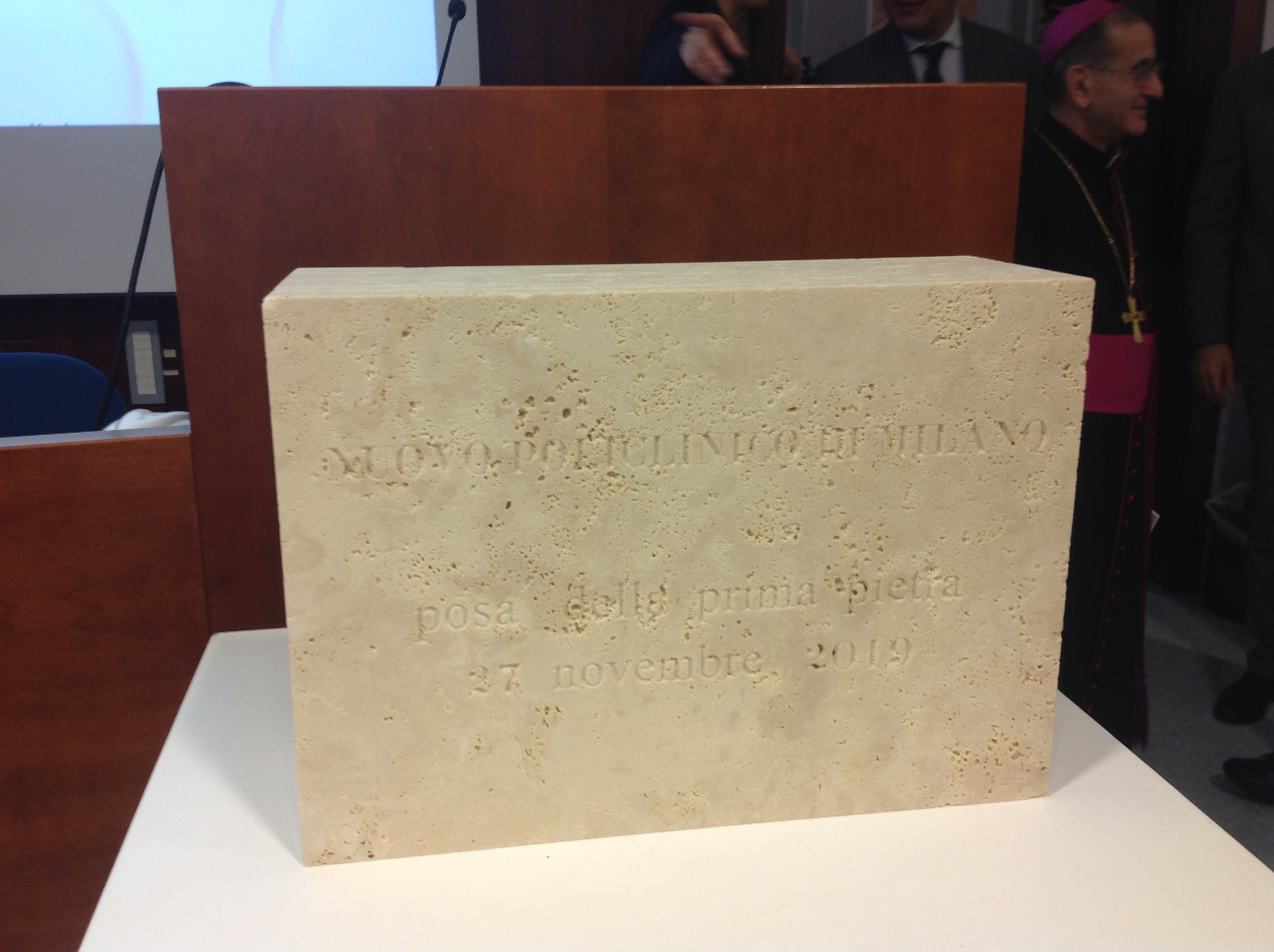 Un ospedale aperto e accessibile, non solo ai pazienti e famiglie, ma a tutta la città. La posa della prima pietra del nuovo Policlinico di Milano si tinge di grandi attese e di speranze per un’opera impegnativa, come la definisce l’Arcivescovo che la benedice in una gremitissima Aula magna della Clinica Mangiagalli. Per l’occasione, oltre a clinici di fama, medici, infermieri, personale e volontari di tante associazioni, ci sono i vertici della Fondazione Irccs Ca’ Granda Ospedale Maggiore Policlinico, con il presidente Marco Giachetti, il direttore generale Ezio Belleri e il Cda. Non mancano il sindaco di Milano Giuseppe Sala e Attilio Fontana, presidente di Regione Lombardia.