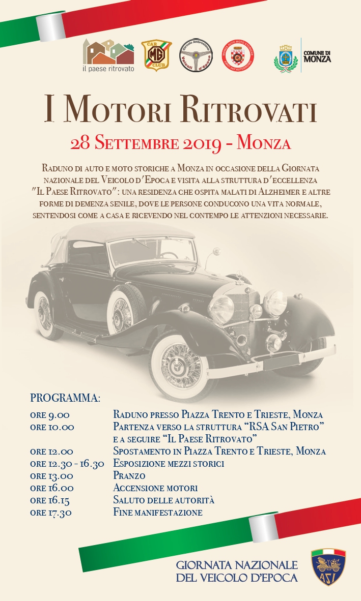 Le iniziative proseguono con una sfilata d’auto d’epoca «Motori Ritrovati», che dal centro di Monza raggiungerà il Paese Ritrovato; performances di maghi e di prestigiatori fra cui il mago Silvan; una mostra fotografica «Il Lavoro che R-esiste» con immagini degli artigiani e dei laboratori di Monza e Brianza. La Fondazione della Comunità di Monza e Brianza propone una visita guidata alla mostra «Dal Marmo al Missile» per persone con Alzheimer e loro familiari. Le iniziative si inseriscono nella campagna lanciata da Meridiana #connessiconilmondo.