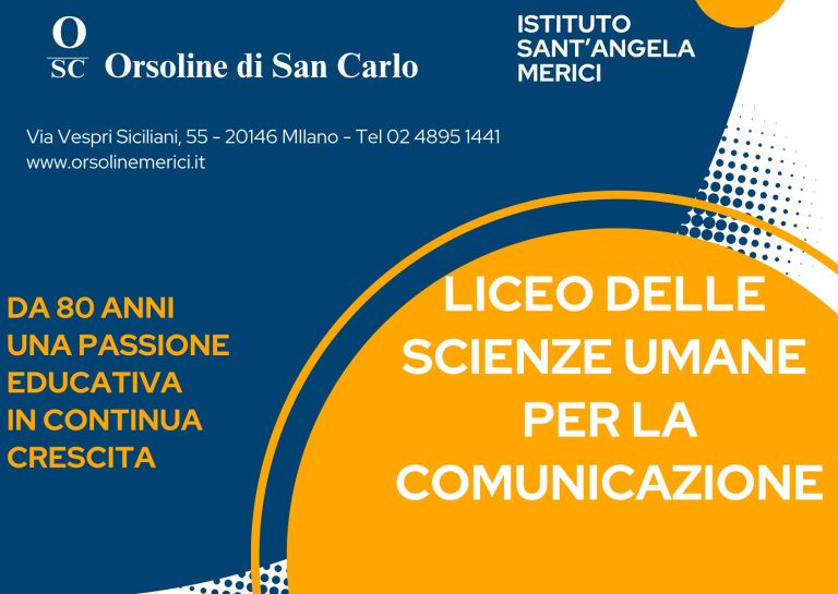 A settembre 2025 le Orsoline di San Carlo apriranno, presso la loro sede di via Vespri Siciliani 55 a Milano, un nuovo liceo, che intende rispondere alla domanda dei tanti studenti già presenti nell’Istituto. Sarà un Liceo delle Scienze Umane a indirizzo tradizionale, con curvatura sulla Comunicazione. Lo studente in uscita, oltre ad avere maturato le competenze specifiche del corso di studi del Liceo delle Scienze Umane, avrà approfondito nell’impianto teorico e nell’esperienza pratica il tema della comunicazione, che è relazione con l’altro, ma anche fondamentale competenza professionale.