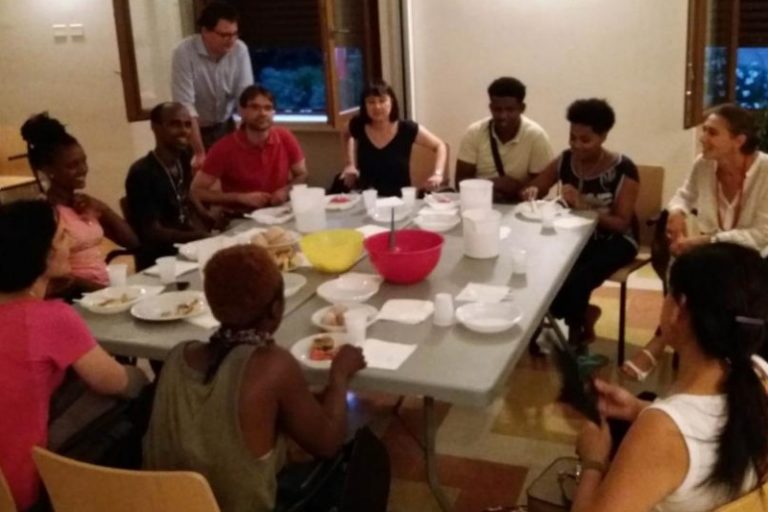 Quest’anno l’accoglienza è stata fatta presso la Casa dell’Amicizia, e in questo nuovo spazio le relazioni hanno trovato il tempo di crescere pian piano. L’ambiente è molto familiare, una grande casa: alcuni volontari preparano la cena e dopo l’arrivo dei ragazzi, profughi appena giunti in Italia o con un percorso complesso tra vari Paesi europei alle spalle, ci si siede tutti insieme a tavola e si condivide il pane.