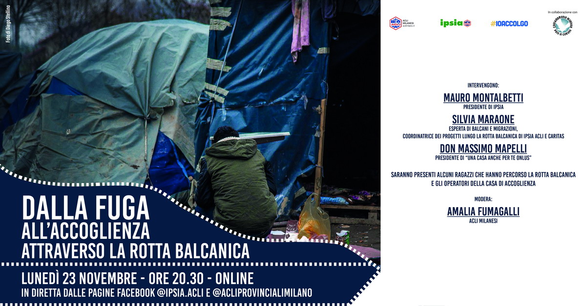 “Dalla fuga all’accoglienza attraverso la rotta balcanica” è l’incontro on line promosso dalle Acli milanesi insieme a Ipsia, al Coordinamento La Pace in comune e alla rete Io Accolgo, lunedì 23 novembre alle 20.30.