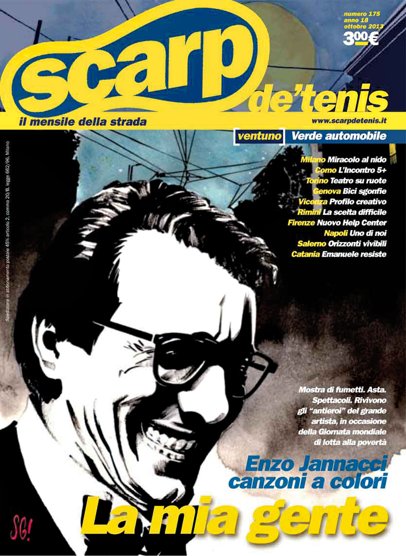 Ad arricchire il numero-anniversario, le rubriche degli editorialisti che si sono aggiunti negli anni alla grande famiglia di Scarp: Piero Colaprico, Alex Corlazzoli, Giangiacomo Schiavi, Bianca Stancanelli, Giorgio Terruzzi. Quelli degli ex direttori, Paolo Lambruschi e Paolo Brivio e del direttore di Caritas Ambrosiana, Luciano Gualzetti. Un pezzo ironico e divertente di Giacomo Poretti. Tre racconti inediti: di Daniela Palumbo, Giuseppe Catozzella e Antonella Cilento. Le interviste alla sociologa Chiara Saraceno e all’attrice Marisa Laurito. Le illustrazioni di Mauro Biani, Angelo Fiombo, Grazia Sacchi, Giampaolo Zecca, Andrea Bianchi Carnevale. E infine il viaggio nelle canzoni di Jannacci che parlano degli ultimi, dei più fragili.