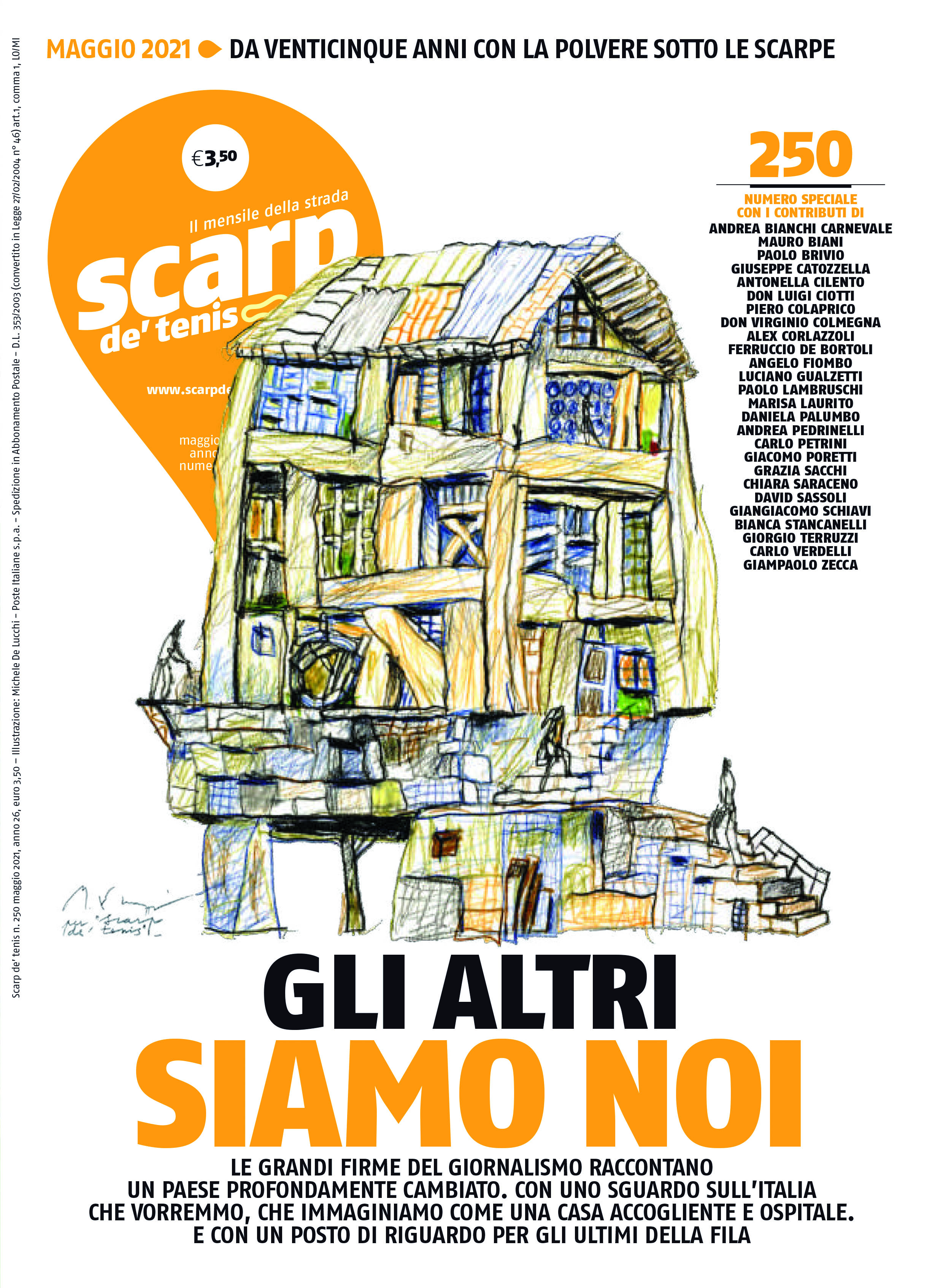 Ripercorre questo lungo percorso Scarp de’ tenis, nel suo 250esimo numero in distribuzione nei prossimi giorni, grazie al contributo di grandi firme del mondo della cultura, del giornalismo, dell’impegno civile e delle istituzioni. In occasione della pubblicazione che coincide anche con il 25esimo anno di fondazione, tracciano un affresco inusuale del Bel Paese due ex direttori di grandi giornali, Carlo Verdelli e Ferruccio de Bortoli, e il presidente del Parlamento europeo David Sassoli. E ancora il fondatore di Slow Food Carlo Petrini, il fondatore di Libera don Luigi Ciotti e don Virginio Colmegna che da direttore di Caritas Ambrosiana nel 1996 volle fondare Scarp de’ tenis con l’intento di «dare voce a chi non ha voce».