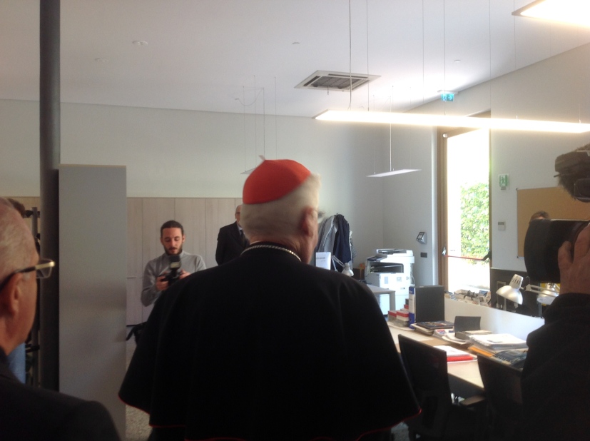 Dopo il taglio del nastro all’ingresso da parte dell’Arcivescovo, della presidente Maria Luisa Monti Riffeser, del direttore, dell’Ad e vicepresidente Andrea Riffeser Monti, e la breve visita agli ambienti rinnovati con tanti giornalisti e tecnici, è appunto il Cardinale a esprimere la sua gratitudine: «Il Giorno è nella mia storia personale fin dagli inizi quando, ragazzo a Malgrate, lo vedevo nell’edicola del paese. Quindi non è del tutto casuale che oggi io mi trovi qui», ha detto Scola, a sua volta “firma” della storica testata come commentatore ed editorialista.