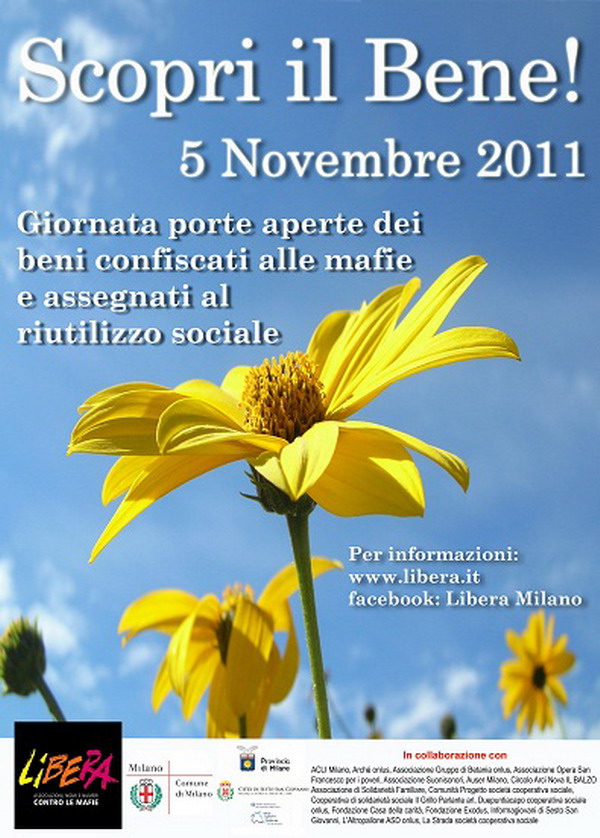 Porte aperte per i beni confiscati alla mafia. L’iniziativa “Scopri il bene!”, organizzata dal Coordinamento Provinciale di Milano di “LIBERA Associazioni, nomi e numeri contro le mafie”, si svolgerà sabato 5 novembre con l’obbiettivo di sensibilizzare l’opinione pubblica sulla presenza delle mafie nel territorio milanese.