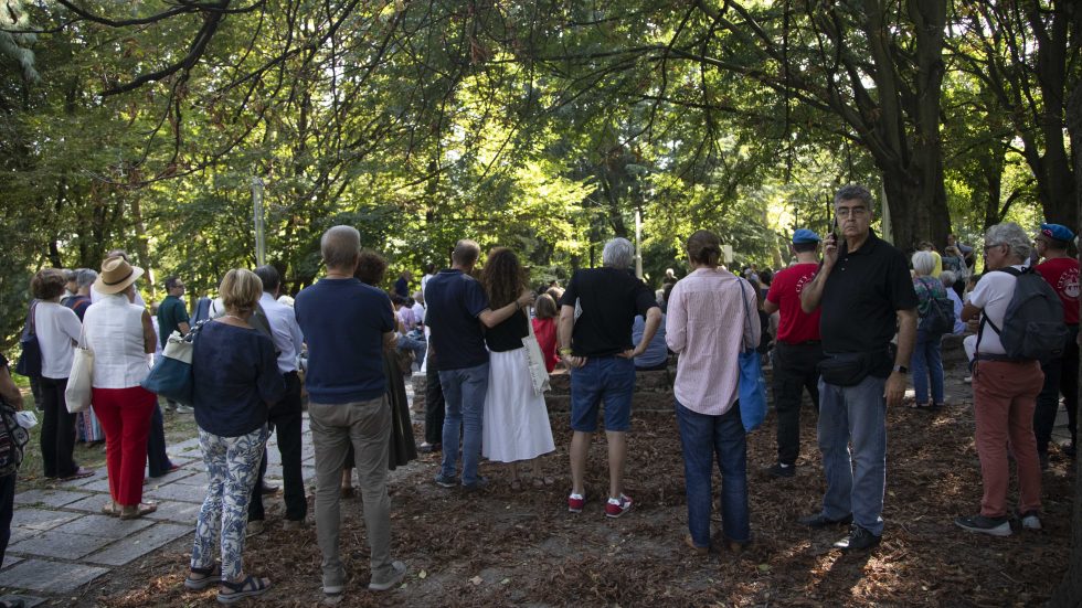 E così arriva anche monsignor Delpini che, presso la piccola tenda che richiama quelle del deserto, prega silenziosamente insieme a Gabriele Nissim, presidente e fondatore di Gariwo e “anima” dell’iniziativa. Un moneto prolungato di raccoglimento silenzioso mentre si sentono i nomi di tutti i bimbi e ragazzi morti: talmente tanti che il nastro dura in totale 19 ore e non può essere proposto integralmente nel solo pomeriggio.