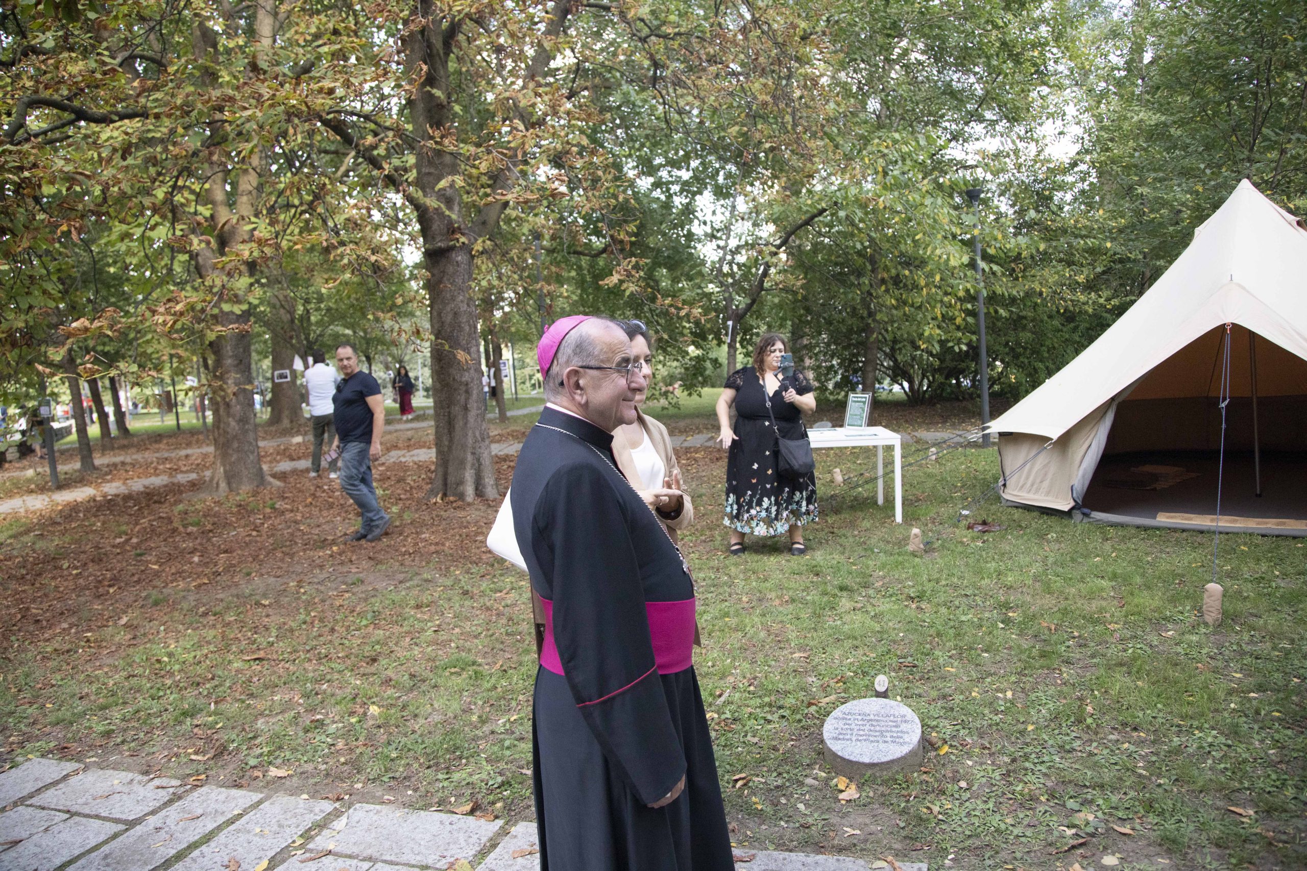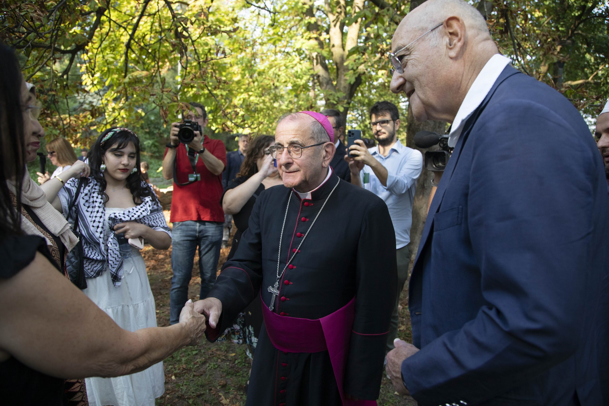 «Un altro mondo è possibile, un mondo diverso». L’Arcivescovo immagina che dicano questo i bambini che sono stati uccisi in questi quasi 3 anni di guerra a Gaza. Gli innocenti che dal cielo cercano di confortare i genitori e di «rimproverare» i loro assassini. Lo dice, infatti, il vescovo Mario – e lo scrive a chiare lettere nel Libro d’onore dei visitatori della Tenda del lutto – alle tante persone riunite presso il Giardino dei Giusti di Milano, per vivere un intero pomeriggio di eventi e di riflessione sulla pace in occasione della Giornata Internazionale della Pace. L’evento, promosso da Fondazione Gariwo, in collaborazione con Ipsia Acli, il Centro di Nonviolenza Attiva e l’Associazione Italiana Amici di Neve Shalom Wahat al-Salam, vede al suo centro, appunto, la Tenda che ricalca quella tenutasi da marzo 2024 nel villaggio binazionale di Neve Shalom Wahat al-Salam, dove israeliani e palestinesi vivono nel rispetto reciproco e in democrazia