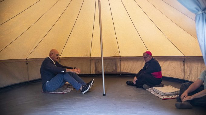 «Sono qui per vedere come le persone, oggi, anche in questo contesto, sanno dire la speranza, sanno dire la determinazione a essere dalla parte della pace, della giustizia e della solidarietà», scandisce l’Arcivescovo attorniato dalla gente. «Non sono venuto e parlare, ma per ringraziare di quello che qui avviene; non sono venuto per parlare, ma per fermarmi un minuto dentro la Tenda del lutto e per ascoltare questi nomi di ragazzi e bambini vittime della guerra. Invito tutti a farlo e a domandarsi cosa fanno adesso queste vite stroncate, queste promesse di uomini e di donne che sono stati eliminati».