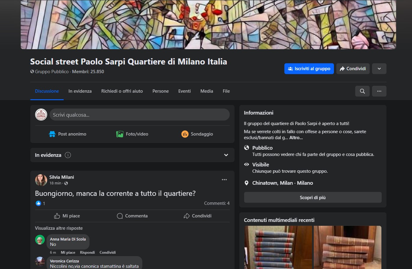 Una panoramica del gruppo Social street Paolo Sarpi Quartiere di Milano Italia