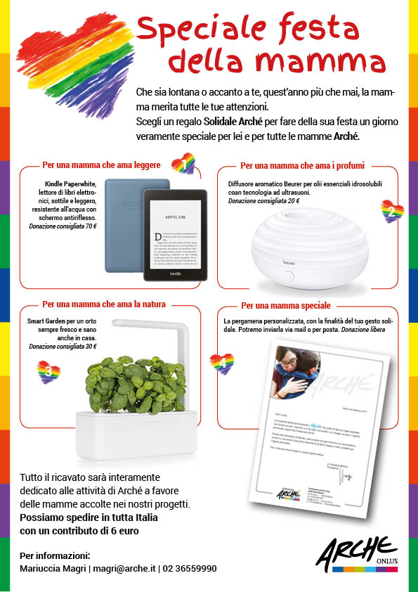 Biancheria da letto e bagno e tutti i prodotti di igiene personale. È quanto può ricevere una delle mamme accolte nelle comunità di Fondazione Arché, grazie alle donazioni in occasione della Festa della Mamma. A certificarlo è la pergamena personalizzata, nel ventinovesimo anniversario di fondazione di Arché, che ogni donatore riceve: un segno tangibile, destinato a durare, del legame che lo unisce alla mamma nel suo percorso di costruzione dell’autonomia personale.