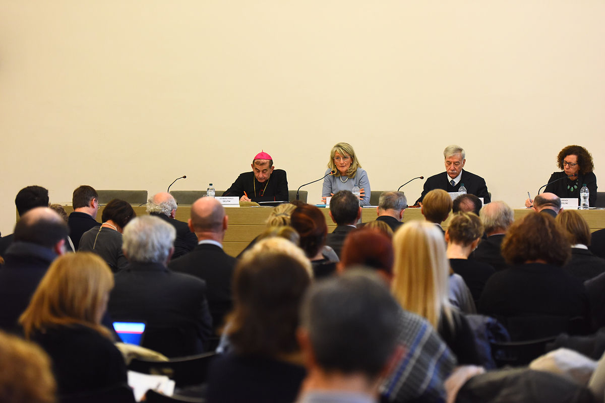 Chiara Minelli, professore ordinario di Diritto ecclesiastico e canonico all’Università degli Studi di Brescia affronta il tema dell’«Alleanza tra scuola e famiglia. Magistero ecclesiale ed esperienza giuridica»: «La sinergia tra scuola e famiglia è irrinunciabile laddove siano in gioco le convinzioni religiose e filosofiche dei genitori. L’alleanza tra scuola e famiglia è entrata in crisi perché è venuta meno la fiducia reciproca. È una crisi che scopre la malattia della relazione. Vi è qualcosa di profondamente disarmonico nel nostro tempo: è il patto educativo che si è rotto». Qual è allora la strada da percorrere? «Cercare vie di speranza perché educare, come dice papa Francesco, è sostanzialmente un’esperienza di speranza. In questo grande cantiere aperto occorre bilanciare bene i passi, facendosi carico di sicurezza e rischi dell’educazione. La crisi più grande nell’educazione cristiana è la mancanza di apertura alla trascendenza, ma la verità ci rende buoni e la bontà è vera, come ha insegnato papa Benedetto XVI. Così si potranno utilizzare i tre linguaggi che una persona adulta deve saper usare, la lingua della mente, del cuore e delle mani. Educare alla verità significa avere dei testimoni perché la figura del testimone, di gran lunga eccedente il buon esempio, inquieta l’attrazione e crea catene di relazioni».