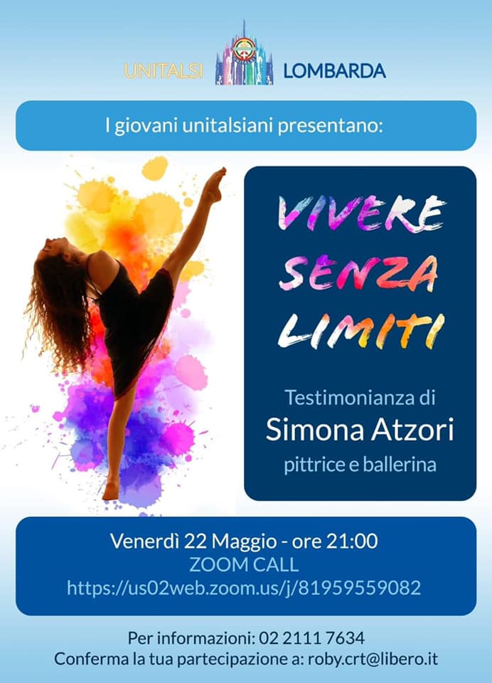 Una testimone d’eccezione per l’Unitalsi lombarda, ai tempi del Coronavirus. La nota ballerina e pittrice Simona Atzori, in una videoconferenza su Zoom, porterà la sua preziosa testimonianza in un incontro virtuale organizzato dai giovani della sezione.
