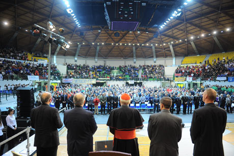 «Siete uno spettacolo bellissimo. Il mio augurio è che restiate sempre così uniti». “Esordiente” al Natale degli Sportivi, il cardinale Angelo Scola si presta di buon grado al bagno di folla del PalaIper di Monza, davanti a spalti gremiti di giovanissimi atleti accompagnati da genitori, tecnici e dirigenti. Con una parola, un sorriso e una stretta di mano per tutti, l’Arcivescovo si cala nel ruolo di «allenatore» e di «capitano» che gli viene attribuito, a cui autoironicamente (per via dell’età) aggiunge quello di «esponente della bocciofila».