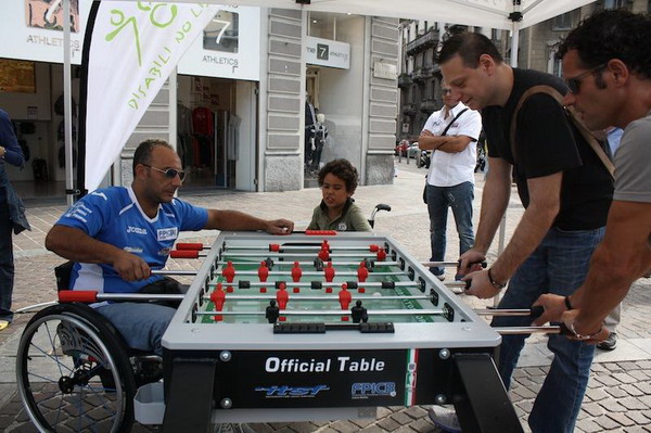 Entusiasmanti sfide tra persone disabili e normodotate si sono accese anche sul tavolo da calciobalilla, dove diversi appassionati hanno sfidato, senza successo, il quattro volte campione del mondo Francesco Buonanno. In molti poi hanno voluto provare l’ebbrezza di un giro in handbike grazie alla collaborazione del gruppo “Giro d’Italia in Handbike”.