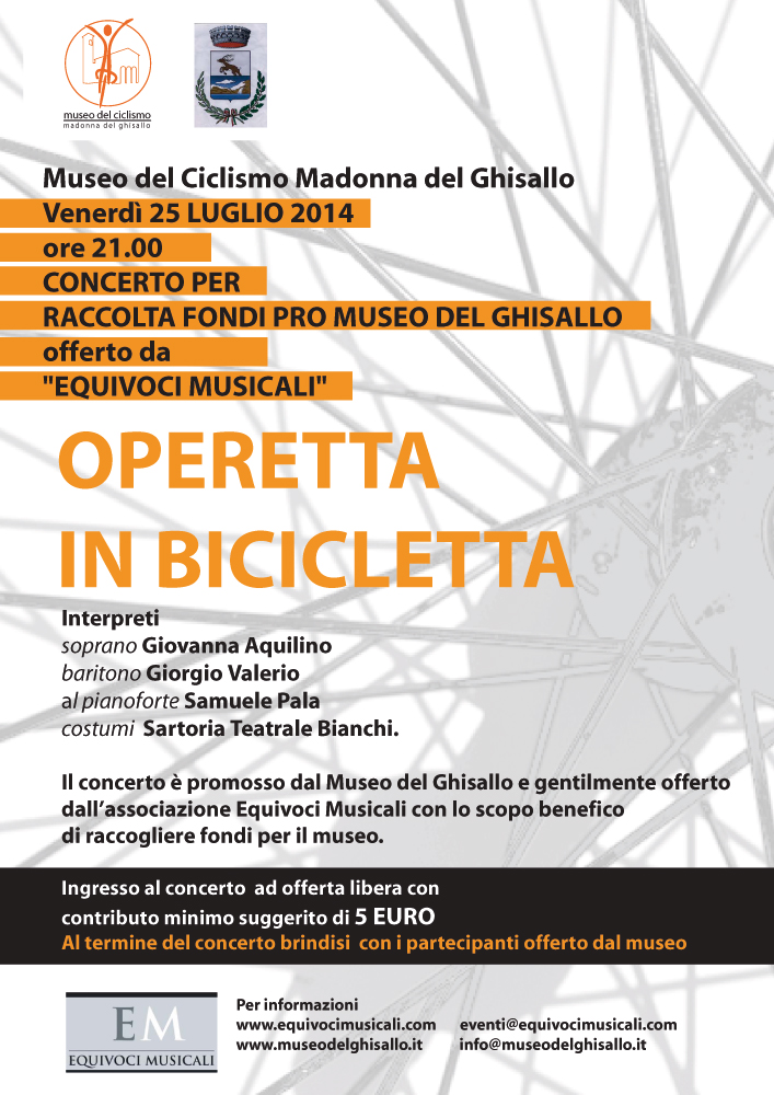 Ingresso a offerta libera con contributo minimo di 5 euro. Al termine aperitivo per tutti i presenti. Info: eventi@equivocimusicali.com, www.equivocimusicali.com; info@museodelghisallo.it, www.museodelghisallo.it