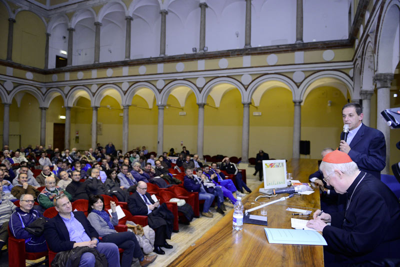 Un pensiero che pare condiviso dalla platea, impegnata ogni settimana a essere un punto di riferimento per giovani. Secondo Scola, e l’esperienza lo conferma, gli allenatori «sono la figura più spontaneamente accettata, accolta, ricercata e in parte anche idolatrata dai preadolescenti. Tutte le altre figure educative devono prima impegnarsi in una molto maggiore fatica della conquista». È quindi facilmente comprensibile perché Scola li consideri punto fondamentale della comunità educante. Tanto da spingersi a dire: «Senza di voi, un’educazione alla vita che sia veramente tale, che sia integrale, e anche un’educazione cristiana alla vita, è oggi molto improbabile». L’invito è quindi, «senza lasciare quello che già fate – precisa Scola – a diventare parte di quella Comunità educante che dà unità alla vita frammentata dei ragazzi, impegnati a passare da ambiti che non sono in relazione». La sfida è far sì che «le persone che hanno a che fare con i ragazzi creino tra loro un rapporto di comunità in funzione dell’esperienza educativa. Anche solo incontrandosi per raccontarla».