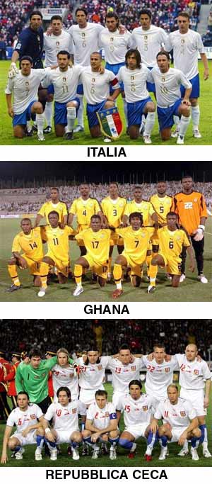 Siamo al girone E, quello dell’Italia. Degli azzurri si parla diffusamente in altre pagine. Il raggruppamento è abbordabile per una squadra che punta ad arrivare fino in fondo, ma non privo di insidie. Gli avversari sono la coriacea Repubblica Ceca di Nedved, Jankulovski e Ujfalusi, gli Usa (presenti alla fase finale dei Mondiali ininterrottamente dal 1990) e il Ghana, ribattezzato addirittura “il Brasile d’Africa” (nei suoi ranghi, Appiah, Muntari e Kuffour).