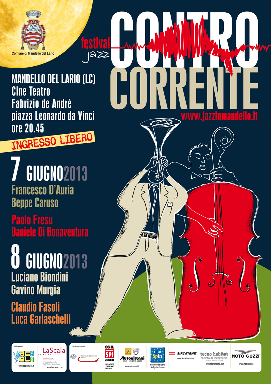 Il 7 e 8 giugno, a partire dalle 20.45, il Comune di Mandello del Lario (Lecco) dà appuntamento a tutti gli appassionati in piazza Leonardo da Vinci, al Cine Teatro “Fabrizio De Andrè” (ingresso gratuito), per la prima edizione di “ControCorrente” con due serate di arte, classe e poesia musicale, dedicate ai tanti estimatori della musica jazz di qualità e a quanti vogliono continuare a vivere emozioni, a condividere bellezza e divertimento, a rinnovare la nostra cultura e tradizione musicale.