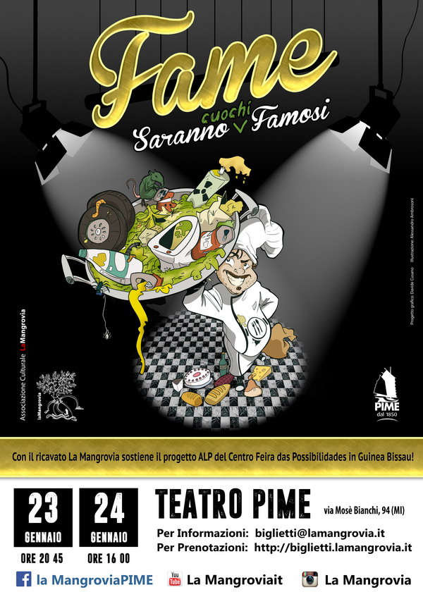 Sabato 23 e domenica 24 gennaio, al teatro del Pime di Milano (via Mosé Bianchi 94), l’associazione culturale La Mangrovia, compagnia teatrale dei ragazzi del Pontificio istituto missioni estere di Milano, mette in scena il musical Fame. Saranno (cuochi) famosi, scritto dalla compagnia, con musica dal vivo, in occasione di Expo, sulle tematiche riguardanti il cibo e la fame nel mondo. Uno spettacolo divertente, ma che tocca argomenti importanti e che vuole far riflettere.