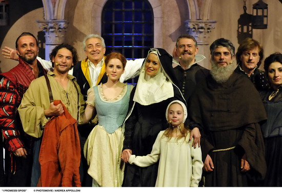 Il noto autore televisivo, con la collaborazione di Pippo Flora, ha infatti riscritto per il teatro ogni capitolo del romanzo manzoniano e prodotto in prima persona un’opera che sa di kolossal, sia per il cast (dieci protagonisti, dieci comprimari, quaranta ballerini, coristi che cantano dal vivo sulle basi musicali realizzate da una grande orchestra sinfonica), sia per l’allestimento che, attraverso imponenti scenografie ruotanti, video proiezioni ed effetti speciali, porterà a San Siro una parte della Brianza lecchese e di Milano (compreso il Duomo, alto più di 15 metri).