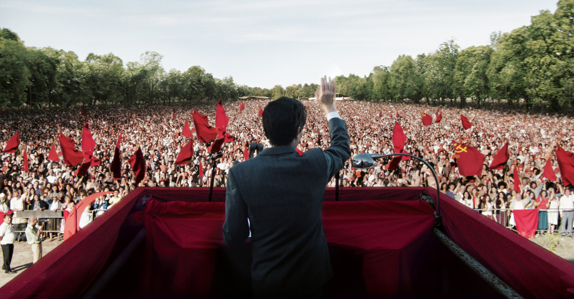 Il film, che ha aperto la 19sima edizione della Festa del Cinema di Roma, è scandito dai discorsi di Berlinguer. Quelli nelle fabbriche, che iniziano dalle domande degli operai e finiscono in strada. Quello a Mosca, di fronte a un pubblico ostile, contrario all’emancipazione del PCI italiano voluta da Berlinguer rispetto all’influenza sovietica. Quello, potente, di fronte al suo popolo, gli elettori che riempiono di rosso le piazze.