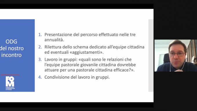 Fino ad arrivare all’incontro di sabato 30 gennaio, vissuto in modalità “a distanza”, coinvolgendo, oltre ai preti incaricati, tutti i laici impegnati stabilmente nella pastorale giovanile ed in particolare nel coordinamento della pastorale giovanile. L’obiettivo: condividere una riflessione e immaginare una modalità per partire con slancio, con un’attenzione specifica alla dinamica della collaborazione laicale. Presenti anche tutti i Vicari episcopali di Zona (che già l’anno scorso avevano aderito ad un incontro con grande entusiasmo), invitati a contribuire su una tematica così importante. Dopo l’intervento di don Stefano Guidi sul percorso effettuato nelle tre annualità, i lavori di gruppo sono infatti accompagnati da questa domanda: «Quali sono le relazioni che l’équipe di pastorale giovanile dovrebbe attivare nel territorio, nella città, per una pastorale cittadina efficace?»