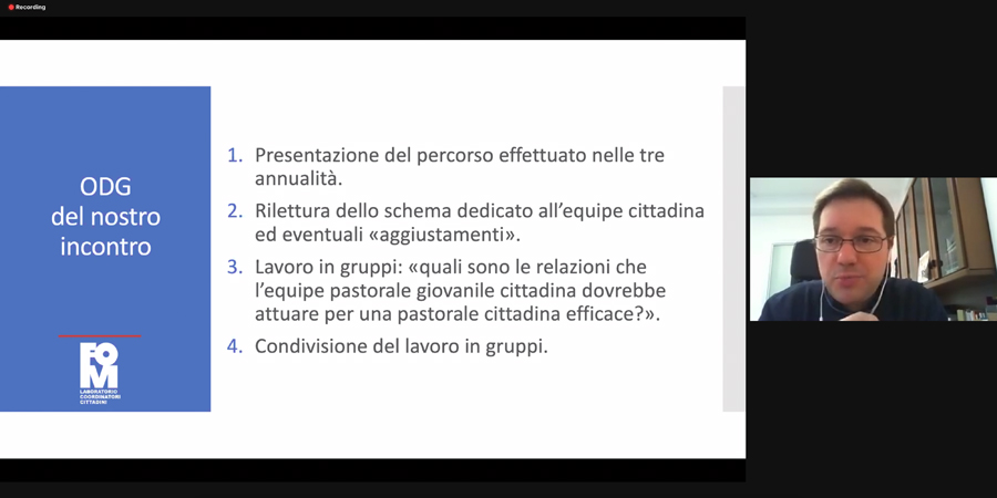 Nonostante le difficoltà della pandemia, il percorso è continuato, a partire da alcune piste operative: diverse modalità di regia educativa per coordinare una grande e media città, il tema della collaborazione con gli educatori professionali in Diocesi, la riflessione sulle competenze utili al prete a partire dai bisogni del territorio. Nell’annualità 2020-2021 già tre gli incontri vissuti: aiutati da don Fabio Landi si è affrontata la relazione con il “mondo della scuola” allargando lo sguardo sulla pastorale scolastica; nel secondo incontro don Samuele Marelli ha guidato nella riflessione sui modelli operativi della pastorale giovanile e sulle attenzioni necessarie, distinguendo due situazioni paradigmatiche: se la comunità pastorale coincide con la città oppure città che ospitano più comunità pastorali nella stessa città o più parrocchie.