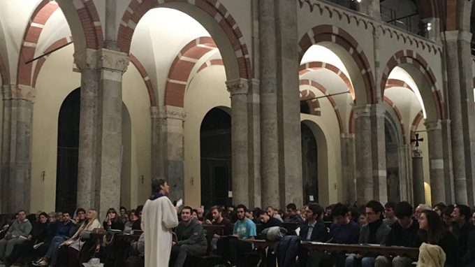La prima serata degli Esercizi Spirituali di Avvento a Milano ha visto radunarsi, come ormai da lunga tradizione, i giovani della città nella Basilica di Sant’Ambrogio. I circa 900 giovani presenti hanno potuto aprire la loro mente e il loro cuore alla pagina della vocazione di Samuele (1Sam 3,1-4,1).