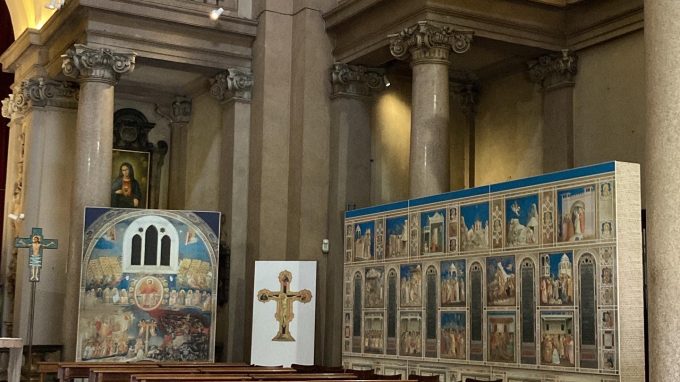 Dal 17 al 30 ottobre 2022, presso la cappella dell'Università degli Studi di Milano, è stata esposta la mostra "Il Vangelo secondo Giotto. La cappella degli Scrovegni", una fedelissima riproduzione fotografica, in scala 1:4, del capolavoro di Giotto a Padova: alcuni giovani, appositamente preparati, hanno introdotto i visitatori alla scoperta delle bellezze artistiche di quest'opera e del significato religioso ad esse sottese. In questo articolo diamo conto dell'esperienza vissuta, tracciando un bilancio sintetico dell'esperienza
