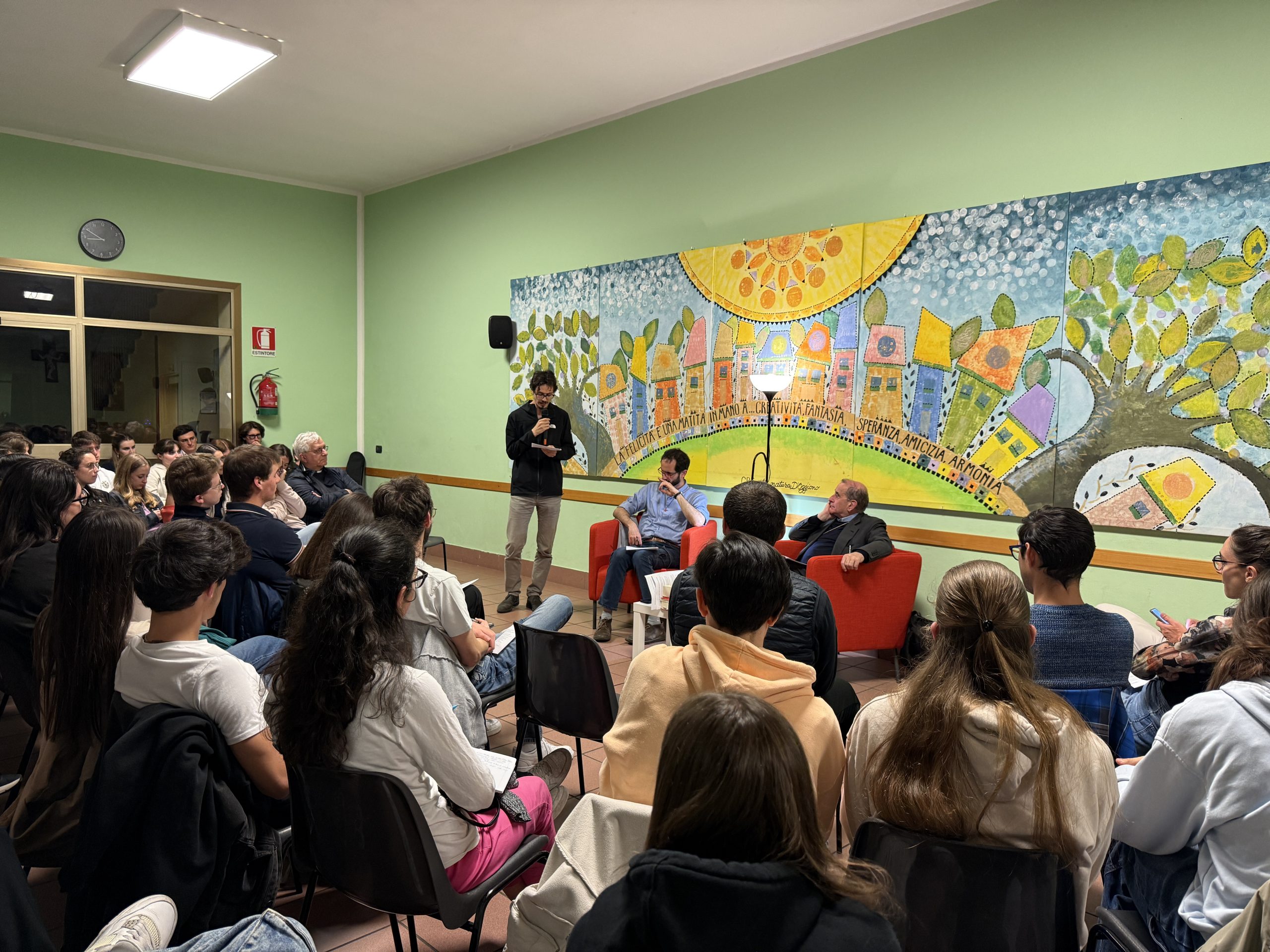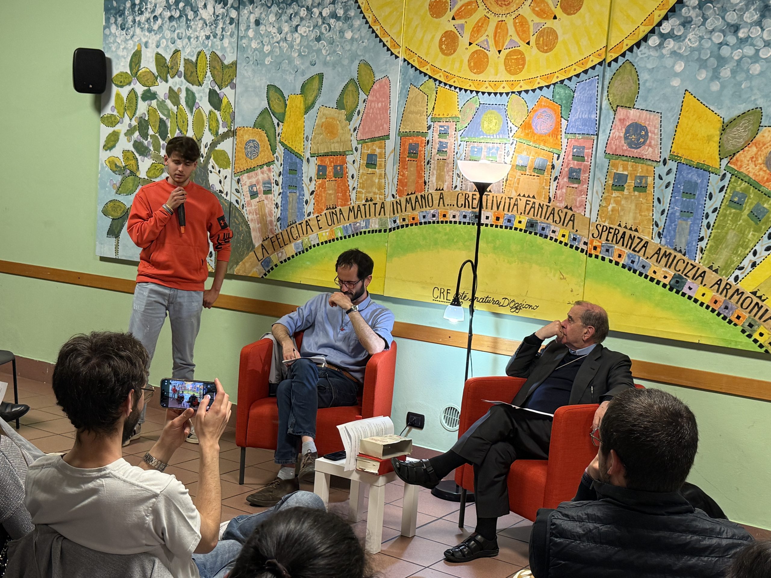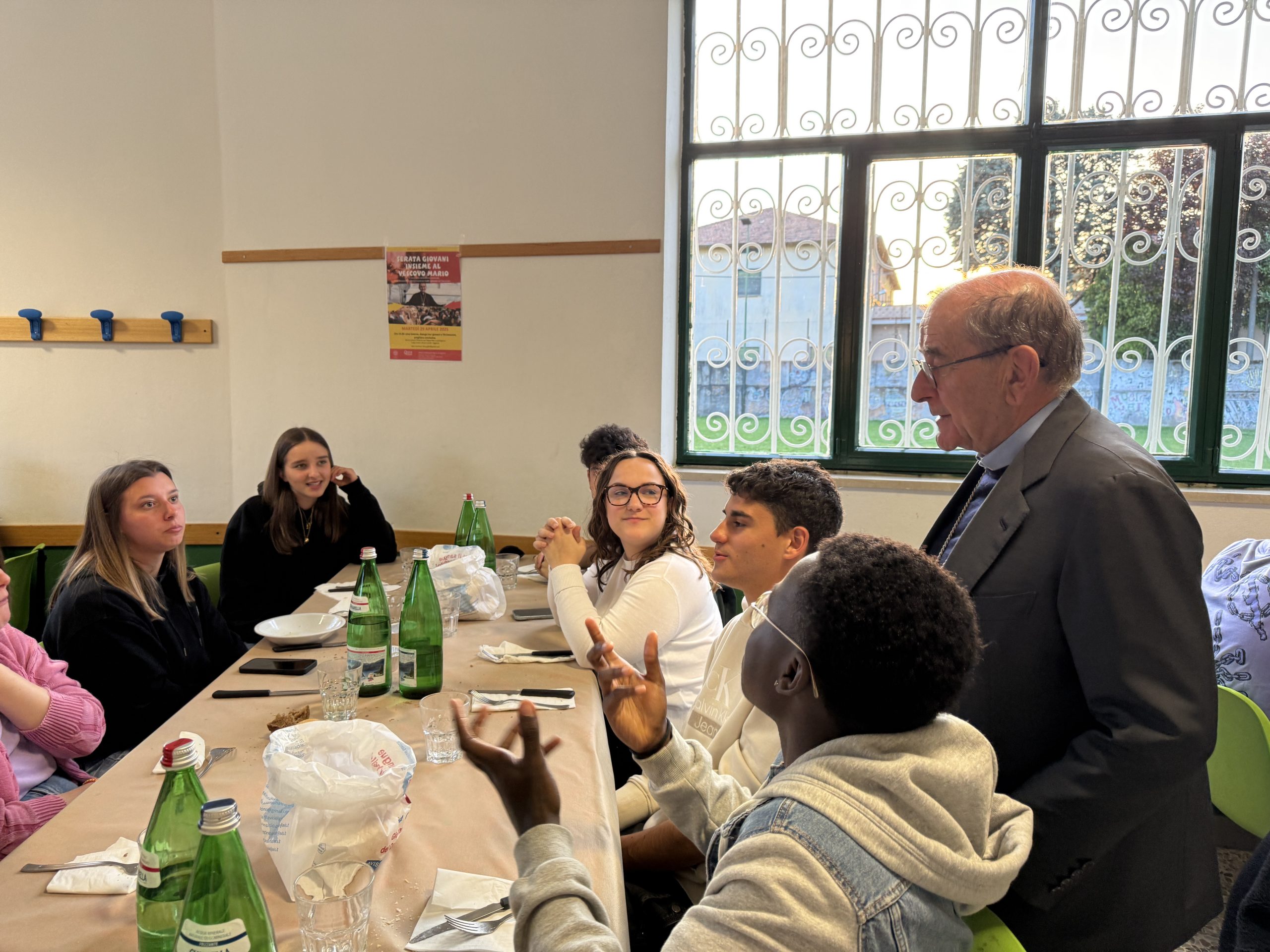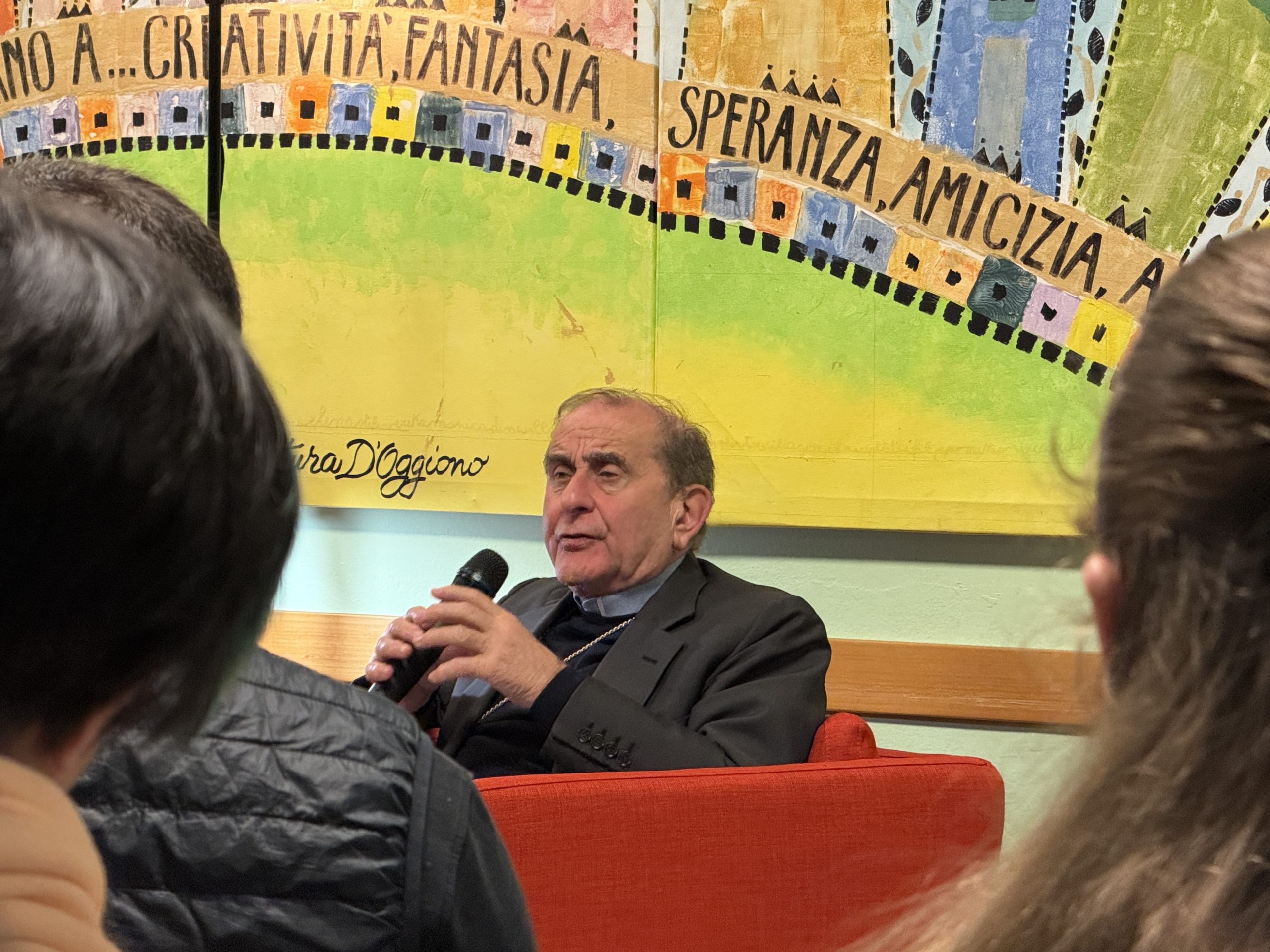 E lui, subito, come premessa, li ha incoraggiati a vivere con profondità questo momento, perché le parole siano prese sul serio come qualcosa che interroga personalmente le scelte e “il vento non se le porti via”: «Le domande riguardano punti fondamentali, problematiche e alcuni aspetti che secondo me sono molto importanti e quindi mi piacerebbe capire che cosa se ne farà delle risposte. Io personalmente sogno che ci sia un tempo, magari tra un po’ di tempo, in cui riprendere la serata, in cui ognuno possa dire una frase che ha raccolto». Ha poi aggiunto, con un sorriso: «Naturalmente potrei anche darvi appuntamento a Roma, al Giubileo, per “interrogarvi” su cosa vi è rimasto».