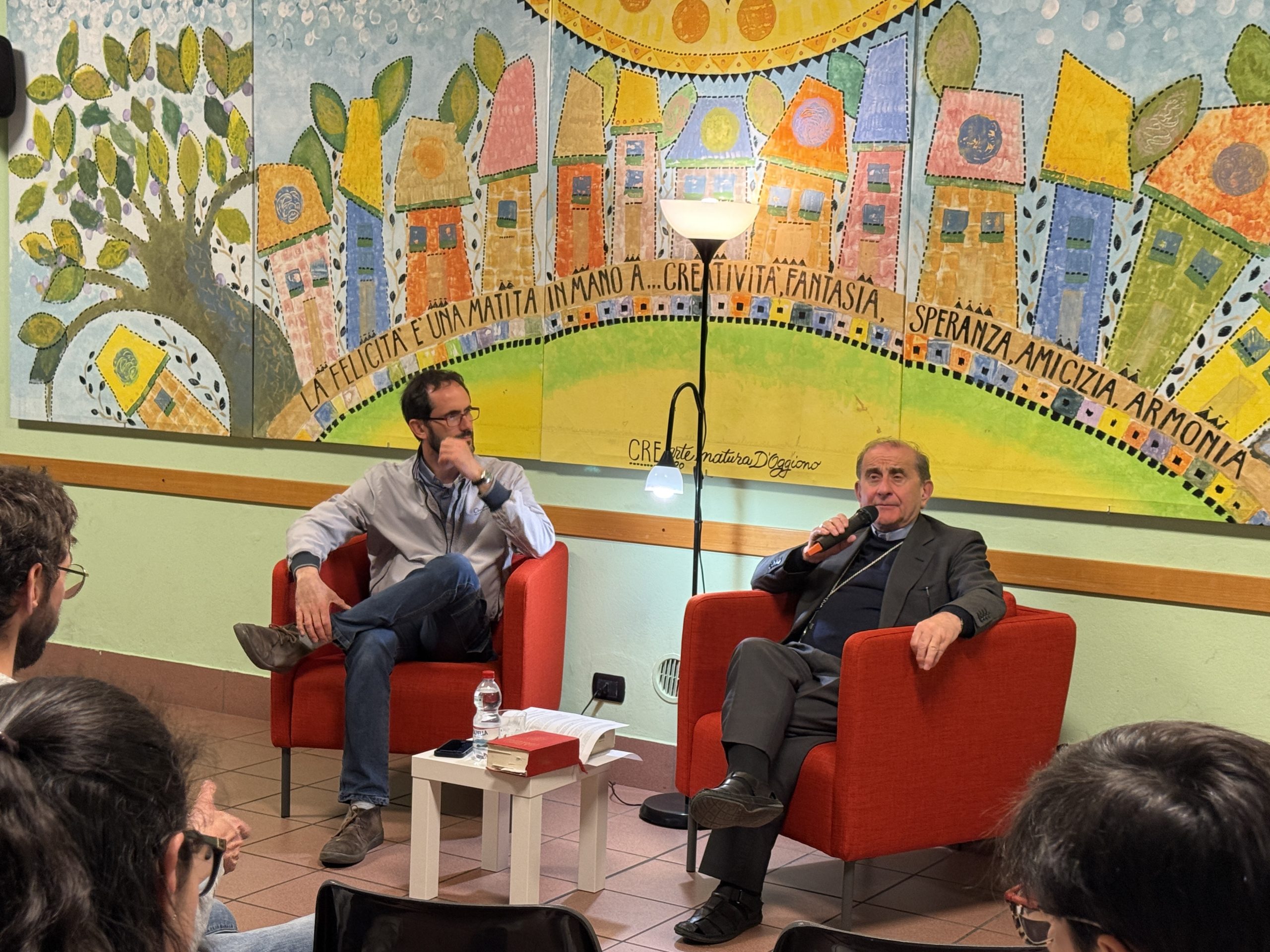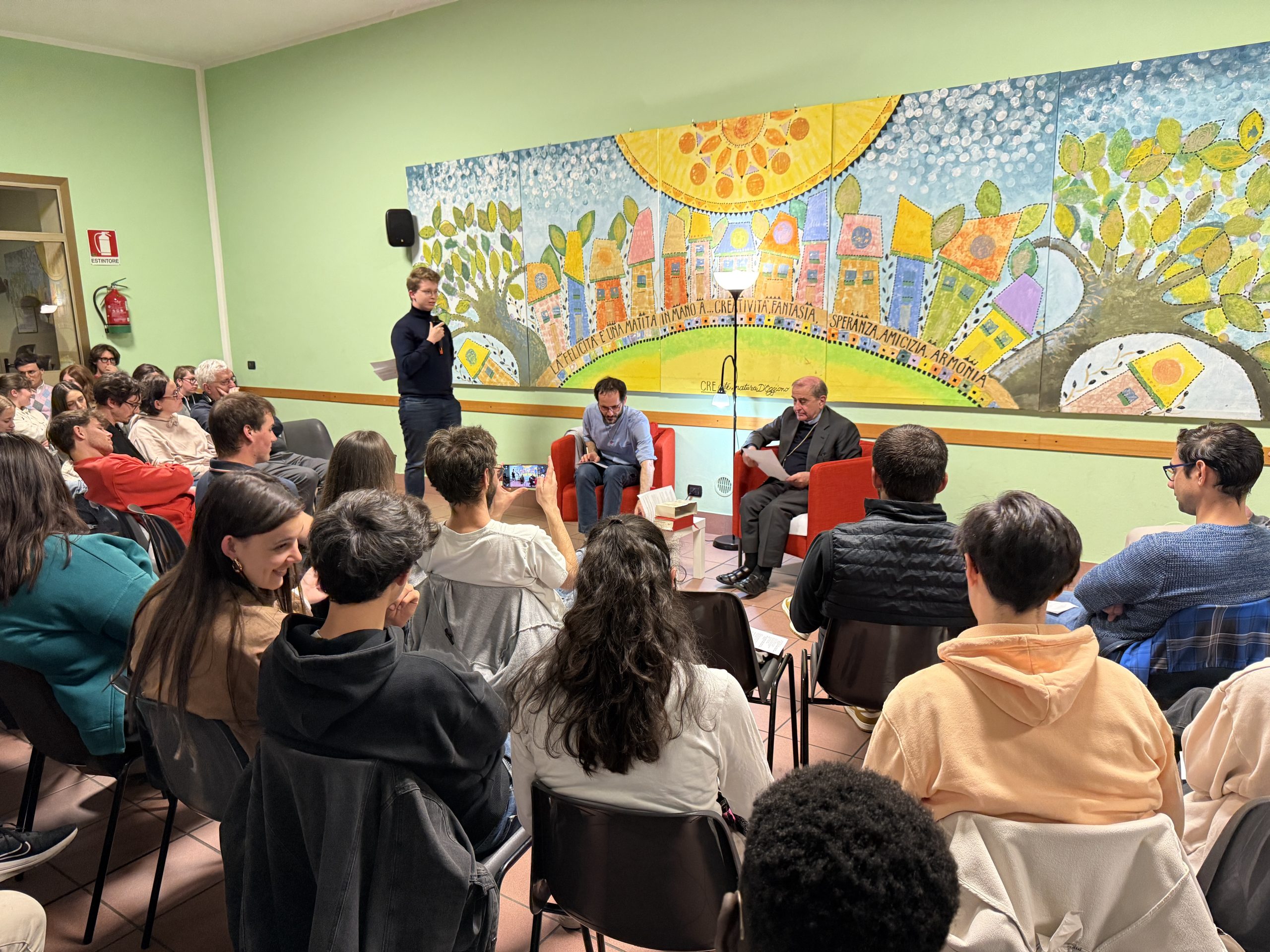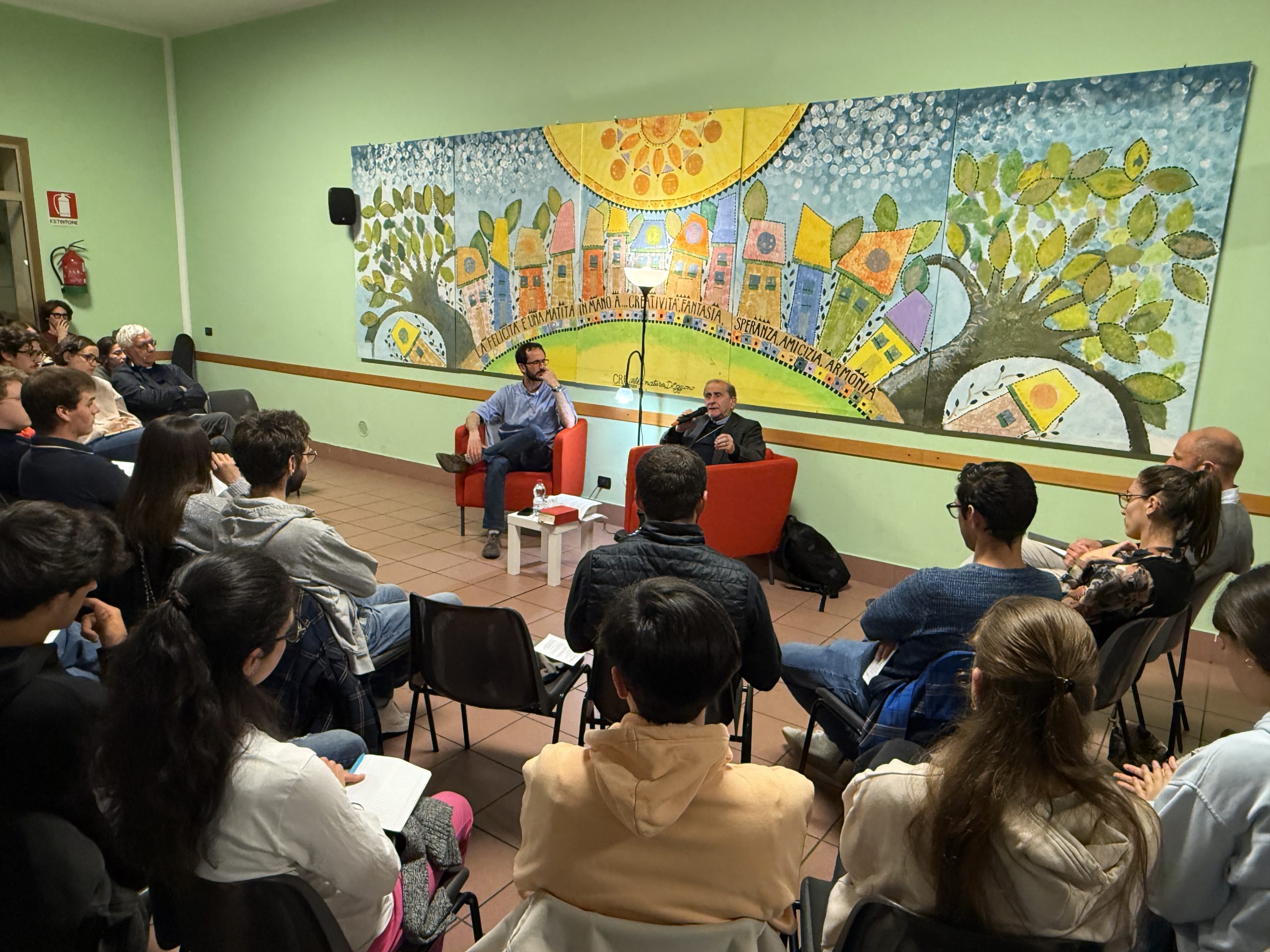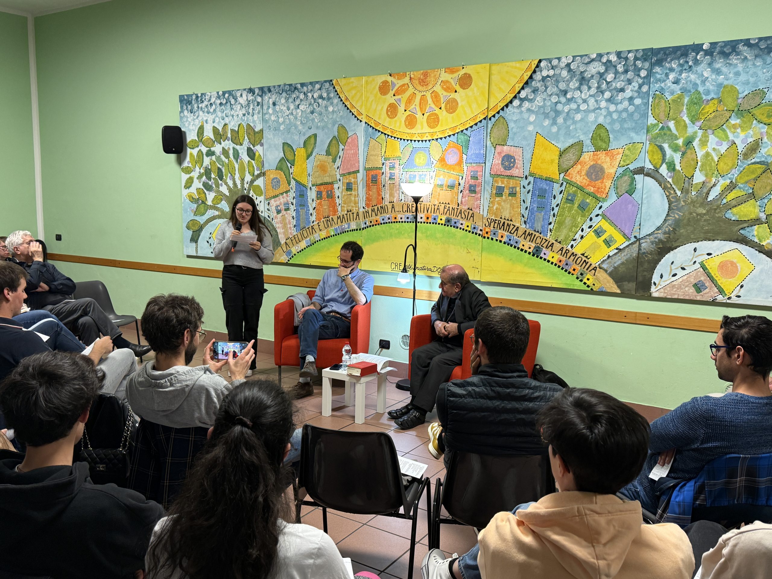 E lui, subito, come premessa, li ha incoraggiati a vivere con profondità questo momento, perché le parole siano prese sul serio come qualcosa che interroga personalmente le scelte e “il vento non se le porti via”: «Le domande riguardano punti fondamentali, problematiche e alcuni aspetti che secondo me sono molto importanti e quindi mi piacerebbe capire che cosa se ne farà delle risposte. Io personalmente sogno che ci sia un tempo, magari tra un po’ di tempo, in cui riprendere la serata, in cui ognuno possa dire una frase che ha raccolto». Ha poi aggiunto, con un sorriso: «Naturalmente potrei anche darvi appuntamento a Roma, al Giubileo, per “interrogarvi” su cosa vi è rimasto».