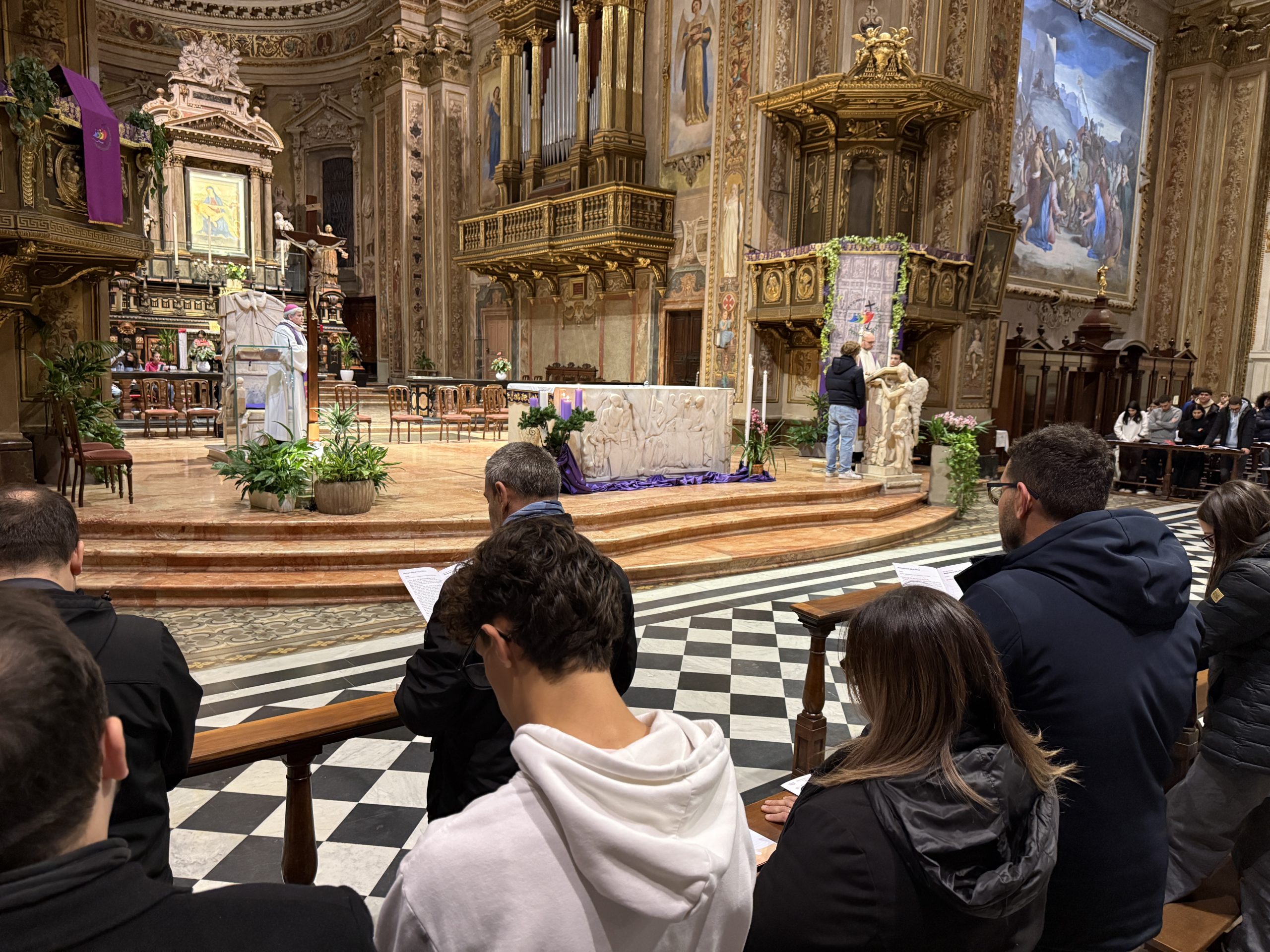 A guidare la meditazione, al Santuario Madonna Addolorata di Rho e alla presenza di mons. Raimondi, è stato don Gianluca Chemini, sacerdote diocesano presso il Pontificio Seminario Lombardo di Roma. La sua riflessione, di cui condividiamo alcuni passaggi, è partita da una constatazione semplice e disarmante: «Hai scelto tu di essere qui questa sera, e avresti potuto non farlo. Perché lo hai fatto? Cosa cerchi? Se sei qui è perché qualcosa ti ha attirato…».